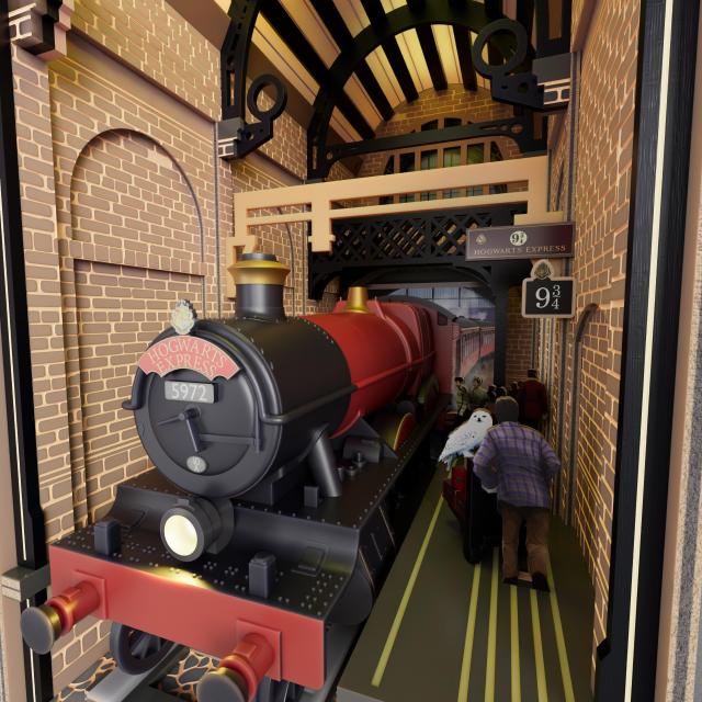 - Window into a magical world: Book nook shelf insert is a detailed scene featuring platform 9¾, Harry Potter and his trolley cart, Hedwig, and much more. The famed window roof of King’s Cross Station illuminates with lighting housed in the top of the set. Finished book nook is 4 inches wide, 9½ inches tall, and 7 inches deep