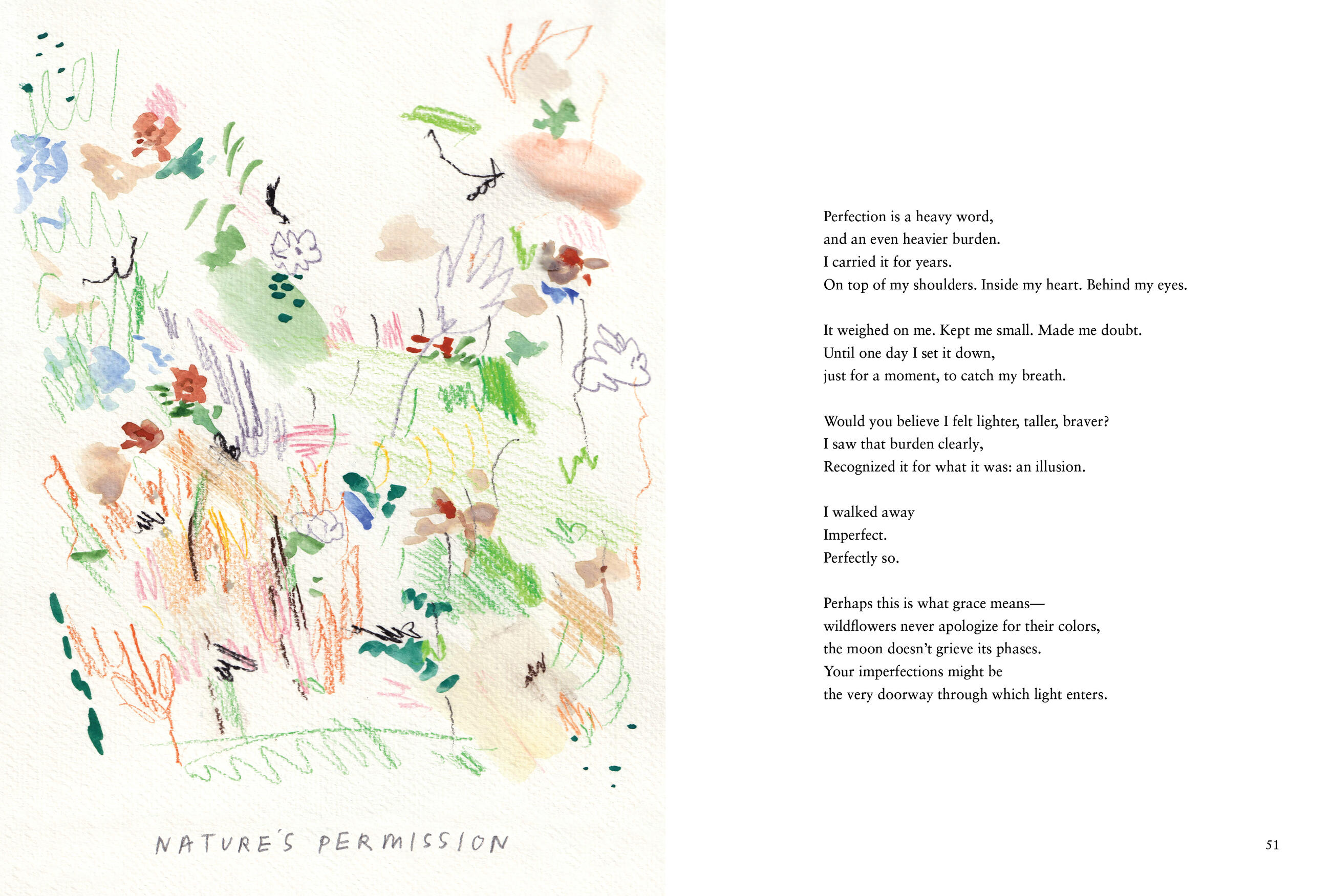 Through watercolor illustrations woven with personal narrative and philosophical reflection, Alessandra offers companionship rather than answers. The book moves through five movements—Question, Doubt, Ground, Open, Renewal—each holding its own texture.