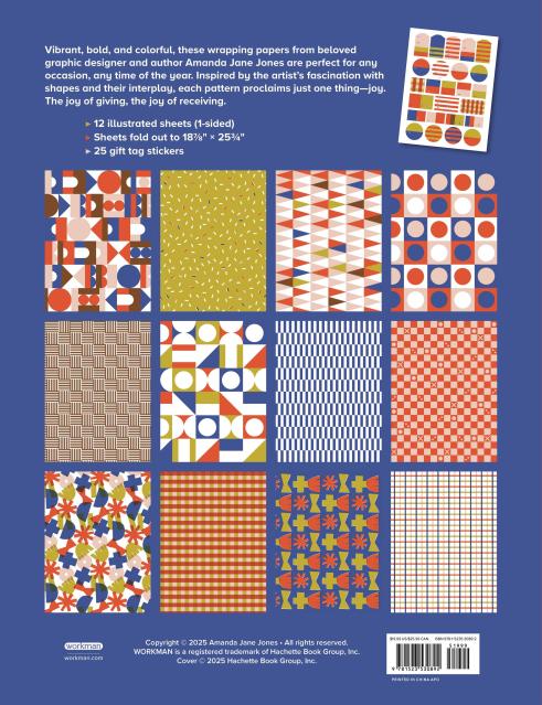 Vibrant, bold, and colorful, these wrapping papers from beloved graphic designer and author Amanda Jane Jones are perfect for any occasion, any time of the year. Inspired by the artist’s fascination with shapes and their interplay, each pattern proclaims just one thing—joy. The joy of giving, the joy of receiving.