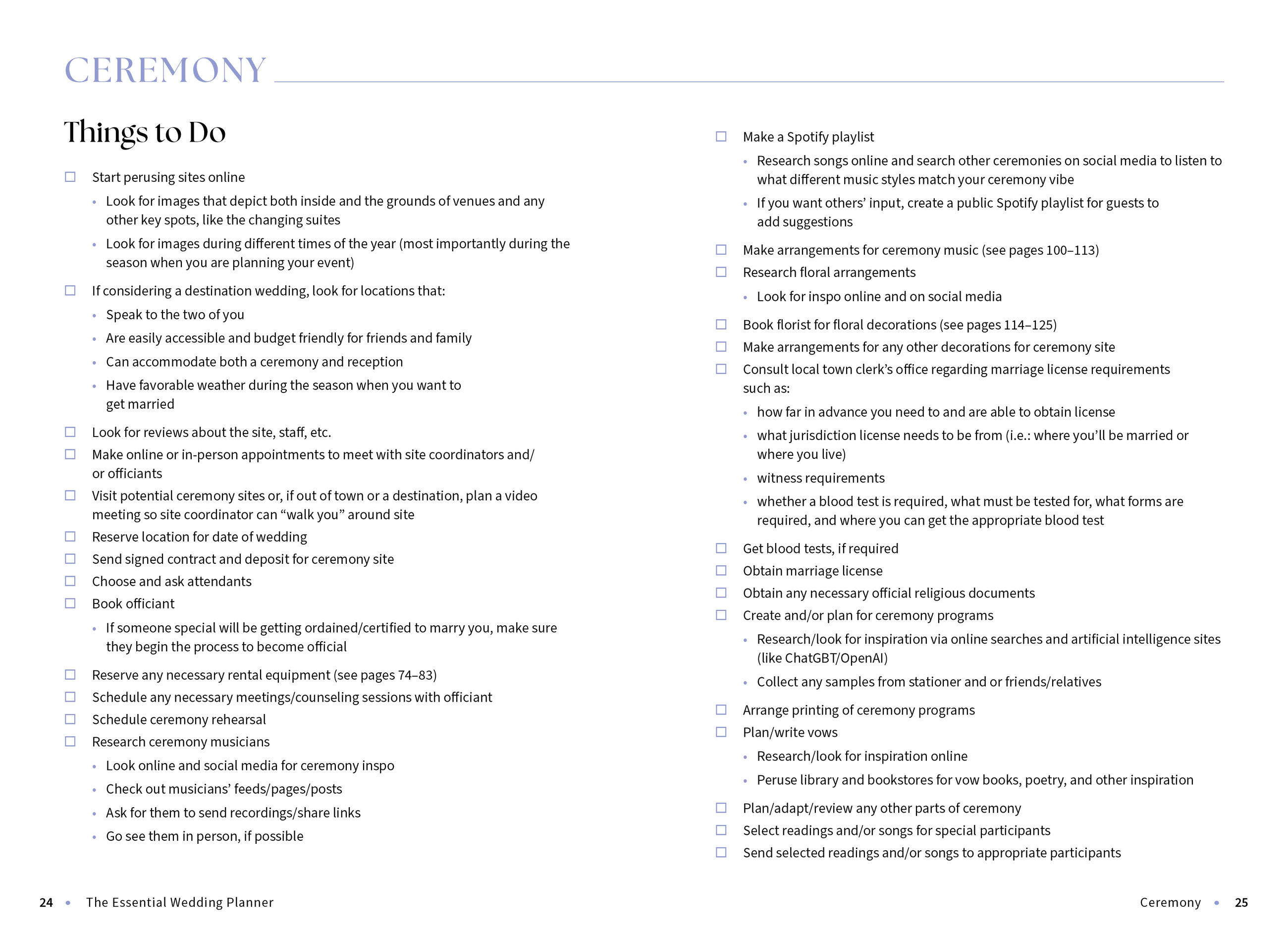 The Essential Wedding Planner Book of Lists offers strategies and checklists for every aspect of organizing a wedding, from the ceremony to the honeymoon and beyond. Originally published in 2002 and repackaged in 2013, it is now updated with a fresh new design and inclusivity (for couples and guests) by wedding expert Amy Nebens. Revised throughout to reflect the key presence of digital communication and social media in the weddings space—and how to navigate the online wedding-planning domain—the book will include a new chapter focused on navigating the digital tools that couples rely on and turn to throughout the planning process. While maintaining tried-and true-traditions, Nebens will also speak to modern practices and trends such as micro weddings, alternative-style invitations, gender-inclusive “bach” parties, drone photography, and nontraditional wedding attire. With lists of questions to guide couples as they interview potential service providers and space to record the answers and compare services and costs—as well as completely up-to-date tips on DIY planning—this must-have planner includes everything a happy pair could need to stay stress-free on their special day.