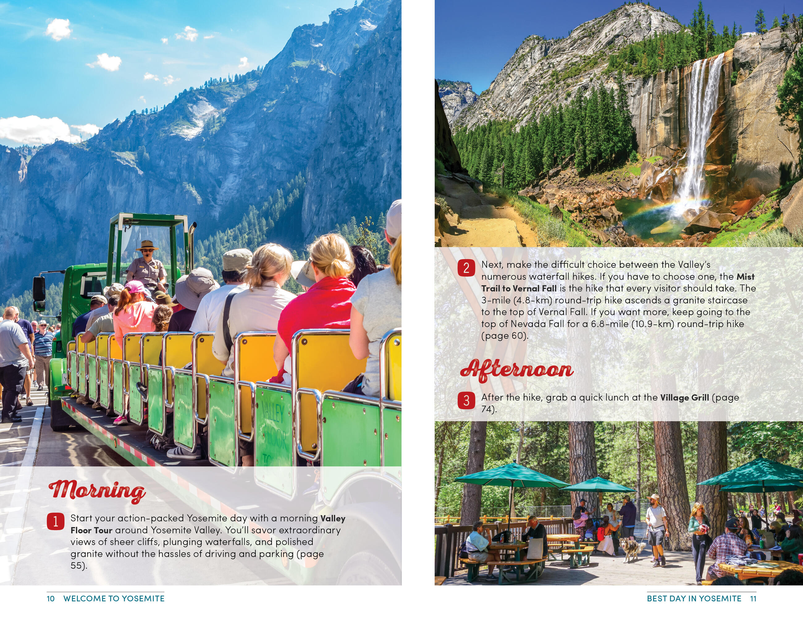 - Can’t-miss experiences: Make it the perfect getaway for you with the best waterfalls, views, picnic spots, and more. Ride the open-air tram through Yosemite Valley or hike downhill from Glacier Point past roaring waterfalls. Admire the towering trees in the Mariposa Grove of Giant Sequoias, or spot black bears and bighorn sheep