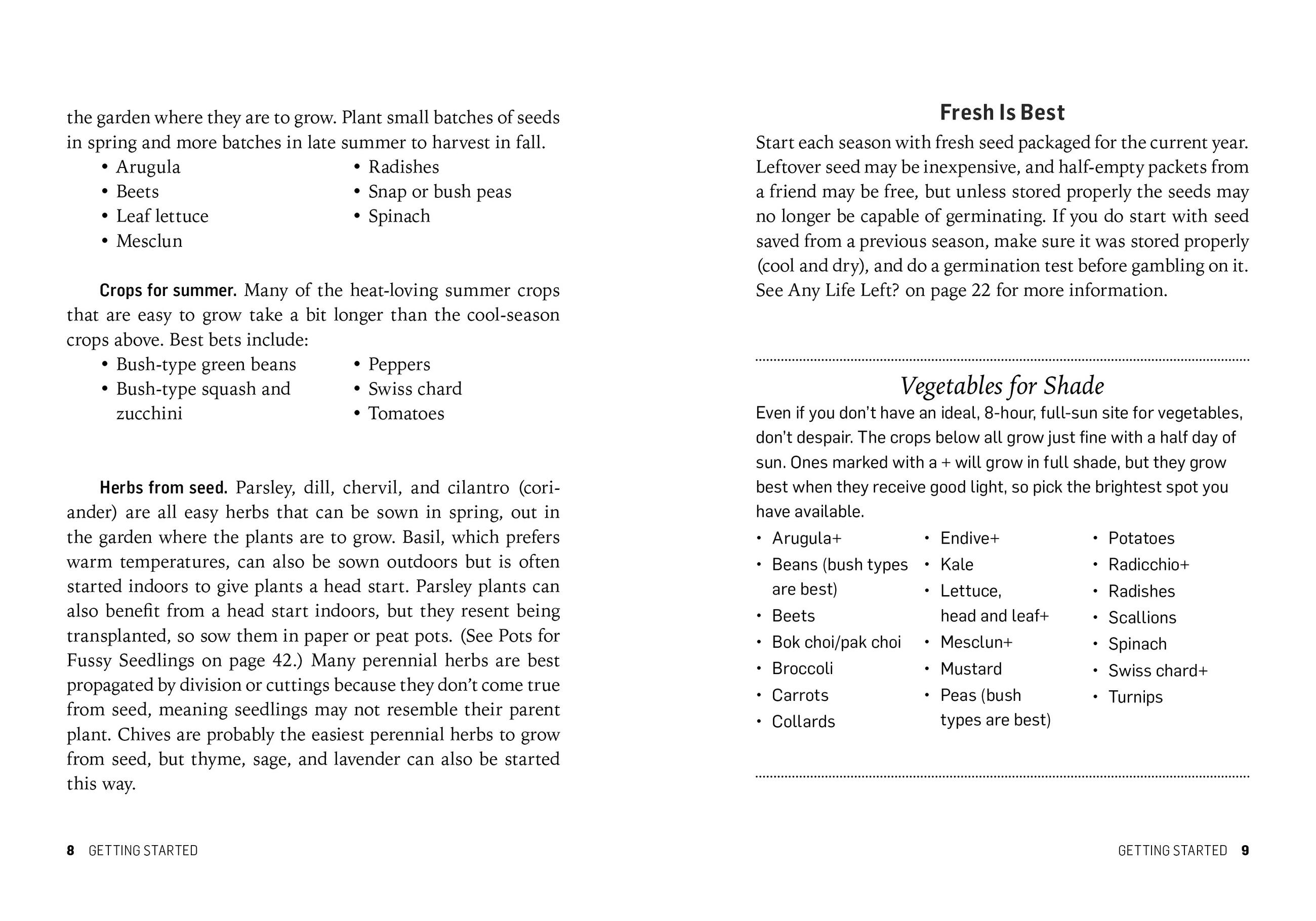 Starting Seeds is a basic guide to growing plants from seed, whether they're started indoors or out.