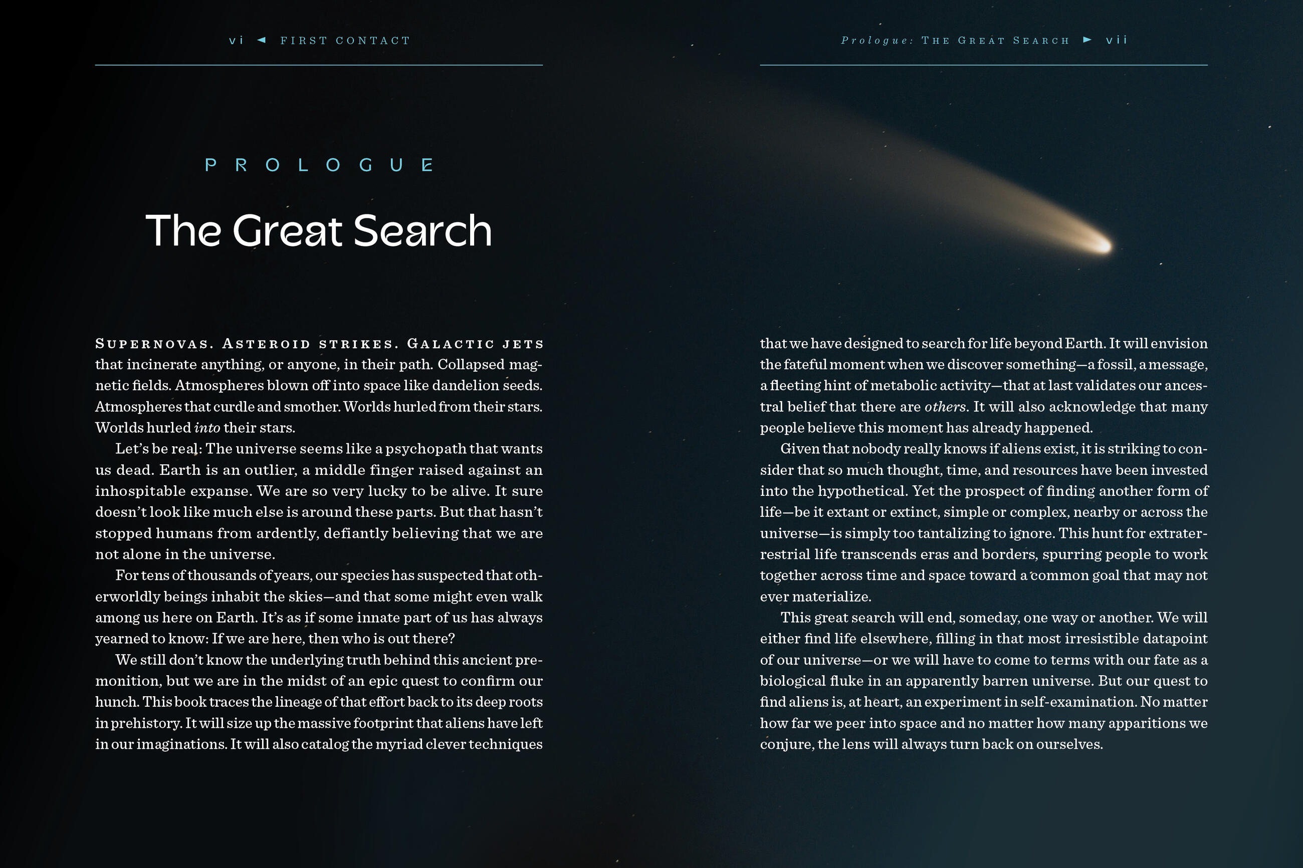 "Read First Contact and marvel at the sky, with its billions of possibilities for habitable worlds. Becky Ferrera’s vivid narrative sweeps us along in a scientific adventure that spans time from the Neanderthals to alien icebreakers to the fascinating question of what it would mean to make contact and find life elsewhere in the universe."Lisa Kaltenegger, Director of the Carl Sagan Institute and author of Alien Earths