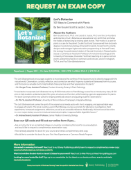 Let’s Botanize! is a guide to learning about and understanding the world of plants, a hobby that can ease stress, bring joy, and deepen your connection with the incredible diversity of life all around you. With easy entry points and lush photography, the 101 prompts inspire readers to engage with plant life meaningfully each day by observing the parts, patterns, and processes that make plants so amazing. Examine a bud at the tip of a branch—does it have hairs or scales? What is the most brightly colored plant part you can find that is not a flower or a fruit? Listen to the plants—what sounds do you hear them making? Follow the prompts on dedicated walks in the woods, on your sidewalk, on your commute to work, or even in your kitchen! Revisit prompts at different times of year, in different countries, climates, and ecosystems. As you learn more, you may even find that revisiting the same prompt and the same tree can provide a completely different perspective as you become more familiar with the wonderful world of plants.