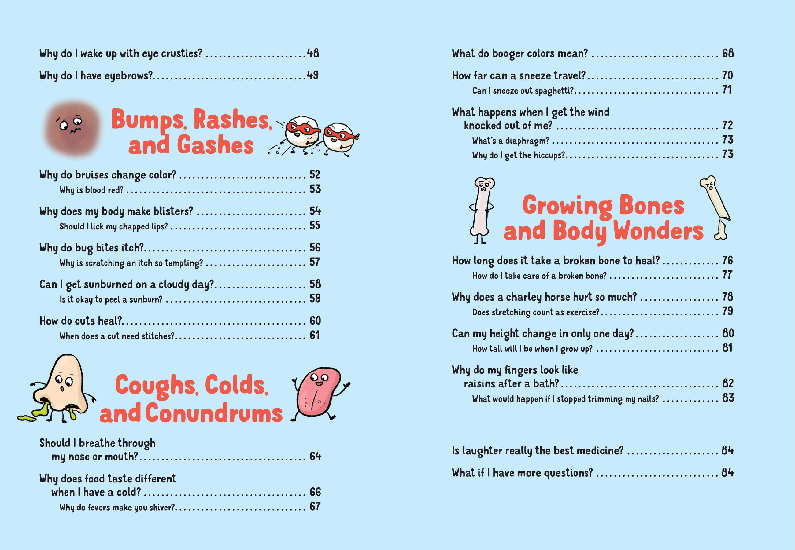 What do the colors of my boogers mean when I have a cold? If I hold my pee too long, could my bladder explode? Why do bruises change color? Kids have so many pressing questions about the stuff their bodies do and what happens when they’re sick. Pediatrician Betty Choi gives honest answers to 53 curious questions in this kid-friendly Q&A, with easy-to-follow, fun comics by illustrator Jannie Ho. Topics range from “Grub, Guts, and Glorious Waste” to “Silly Senses” and “Coughs, Colds, and Conundrums.” In the process, Dr. Choi shows kids how amazing and resilient their bodies really are and that doctors are here to help.