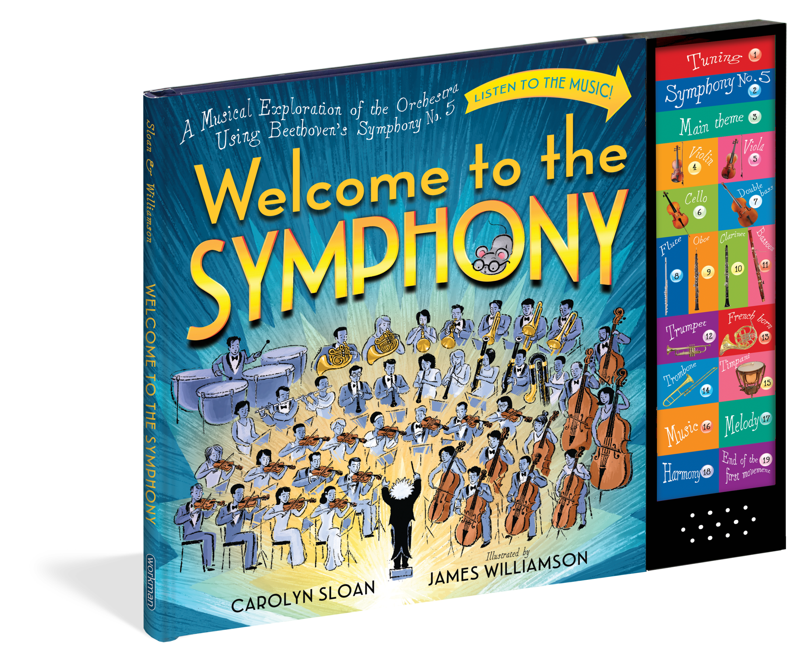 Welcome to the Symphony is the first book in music educator Carolyn Sloan’s hugely successful Welcome to … sound button picture book series that introduces classic musical genres to young readers, followed by Welcome to Jazz and Welcome to the Opera.