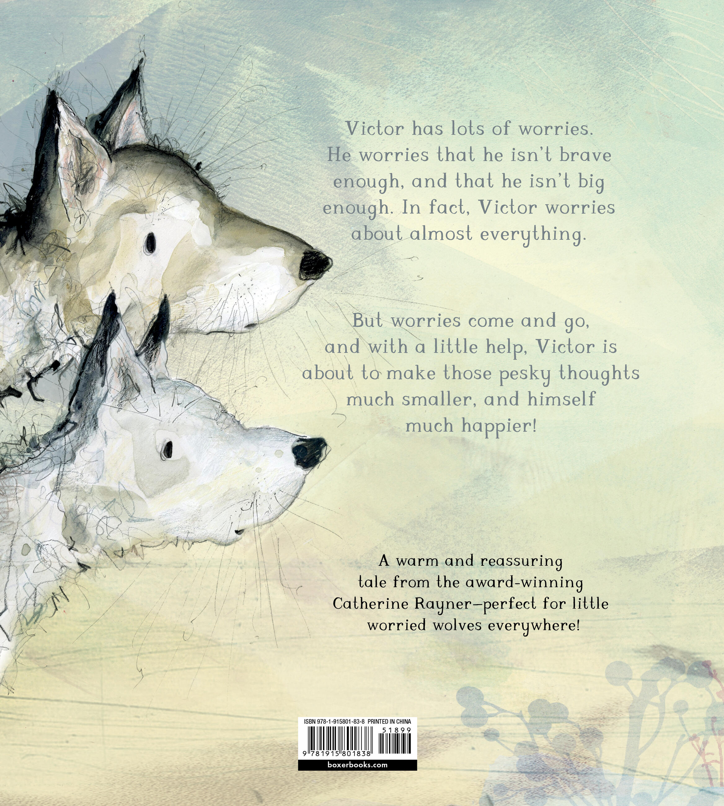 Victor the wolf has lots of worries. He worries that he isn’t brave enough, that he isn’t big enough, and that he isn’t fierce enough. In fact, Victor feels anxious about almost everything. But when Victor shares his concerns with his best friend, Pablo, he starts to feel a little better. With Pablo’s help, Victor learns even more ways to deal with those pesky worrying thoughts. And as the worries grow smaller, Victor feels a little bigger and a little braver!