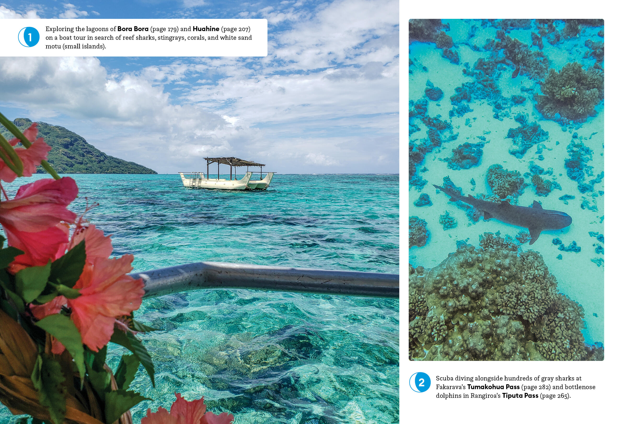 - Outdoor adventures: Get up close with migrating humpback whales and scuba dive with sharks, manta rays, sea turtles, and more. Trek along a jungle trail in search of refreshing waterfalls, paddle a traditional outrigger canoe across a bright blue lagoon, or unwind on the pink and white shores of idyllic Tikehau