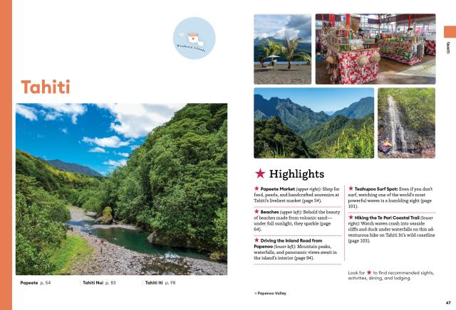 - Must-see highlights and unique experiences: Dance to the beat of Tahitian drums at a Polynesian cultural festival, admire striking views of Moorea’s volcanic landscape from Belvedere Lookout, and fall asleep under the stars from the comfort of your overwater bungalow in Bora Bora. Venture out to the Marquesas Islands for dramatic landscapes, secluded beaches, and the best handicrafts in the region, visit awe-inspiring archeological sites, and feast on delicious fresh seafood and tropical fruit