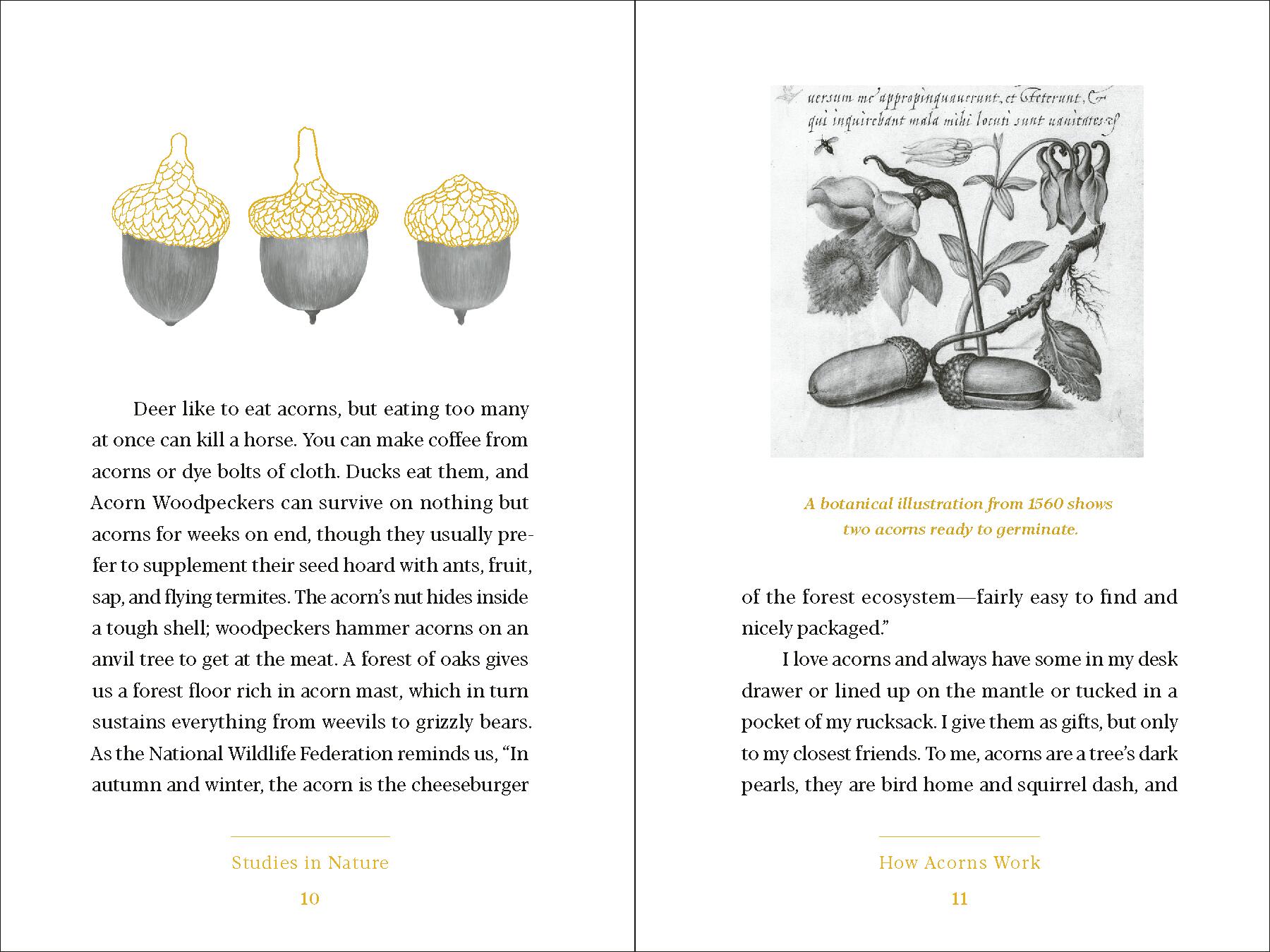 Acorns are the oak seeds whose abundance feeds bears, boars, birds, and beetles.Some acorns are the size of cupcakes while others help turn jays into the brainiacs of the animal kingdom. Lively and engaging, this book celebrates the acorn’s role in forest ecology and human history, sharing many fascinating storiesof adaptation, endurance, and epic survival. Acorns—small but mighty and always newsworthy.