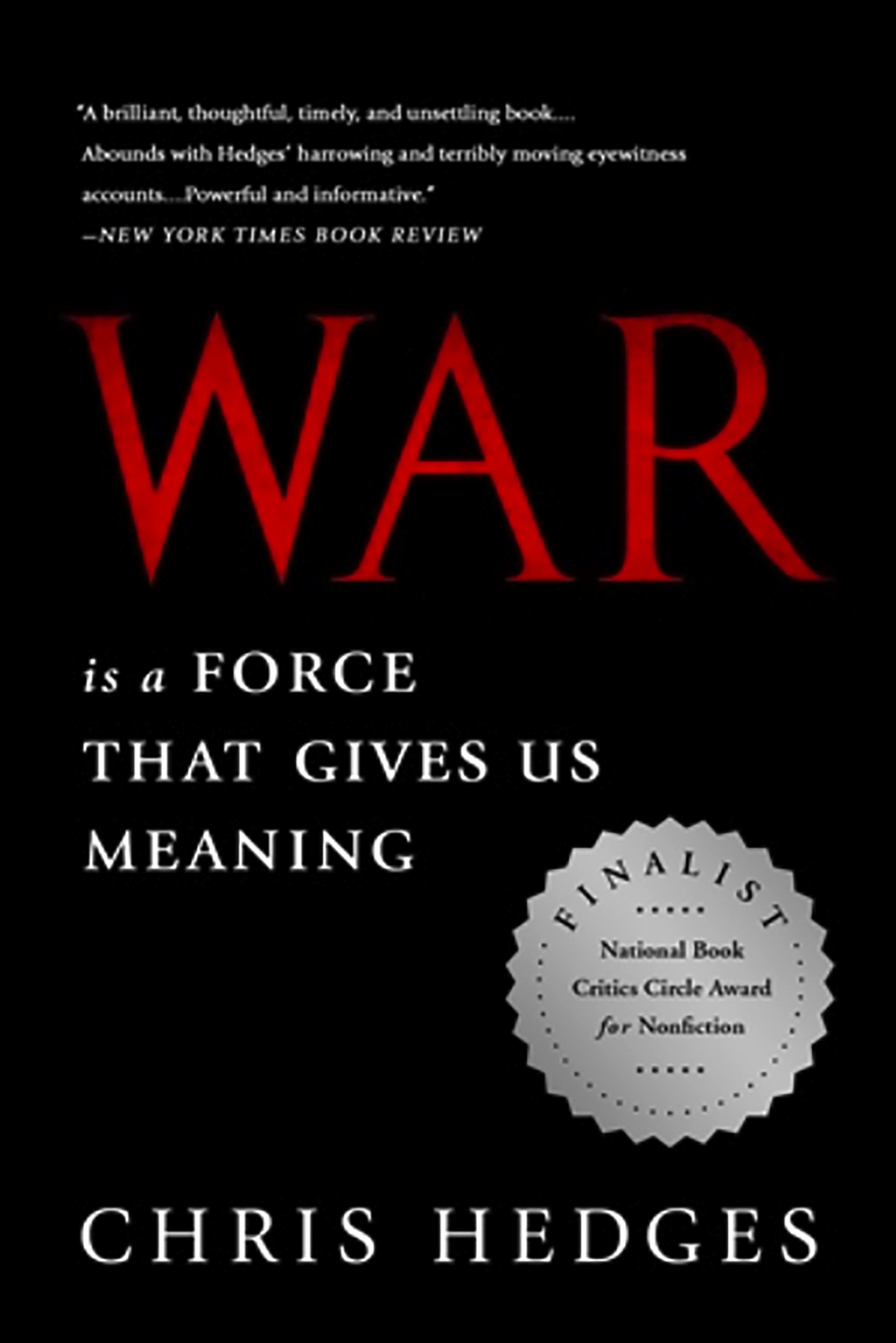 Chris Hedges of The New York Times has seen war up close — in the Balkans, the Middle East, and Central America — and he has been troubled by what he has seen: friends, enemies, colleagues, and strangers intoxicated and even addicted to war’s heady brew. In War Is a Force That Gives Us Meaning, he tackles the ugly truths about humanity’s love affair with war, offering a sophisticated, nuanced, intelligent meditation on the subject that is also gritty, powerful, and unforgettable.