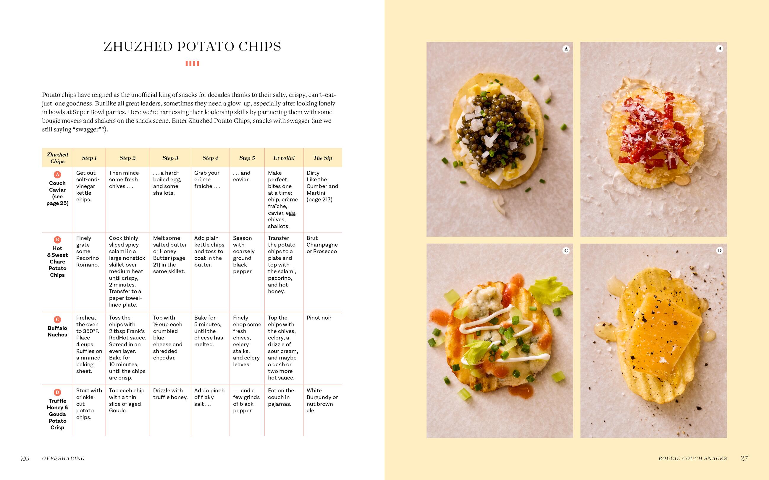 Oversharing is filled with comforting recipes that are organized into playful chapters for every meal and moment. Want to unwind with guilt-free reality TV? Settle in for one of Cort’s famous Bougie Couch Snacks, like Chili Crisp Elevated Popcorn. Too tired to cook? Consider Caesar Salad Meatball Smash Burgers and Pantry Puttanesca Pasta your new favorite Weak-Night Dinners. Impress your guests with When to Wow’s Whole Bottle of Cab Pot Roast and Raise the Bar’s Dirty Like the Cumberland Martini, extra dirty and extra shaken, naturally. Then finish it all off with Kar’s Potato Chip and Pecan Cookies, a Dessert You Won’t Desert. Plus, Cort dishes out practical advice, including her ten kitchen commandments (leave your butter on the counter—and make sure it’s salted) and even a culinary dictionary (“cocktail cardio” anyone?).
