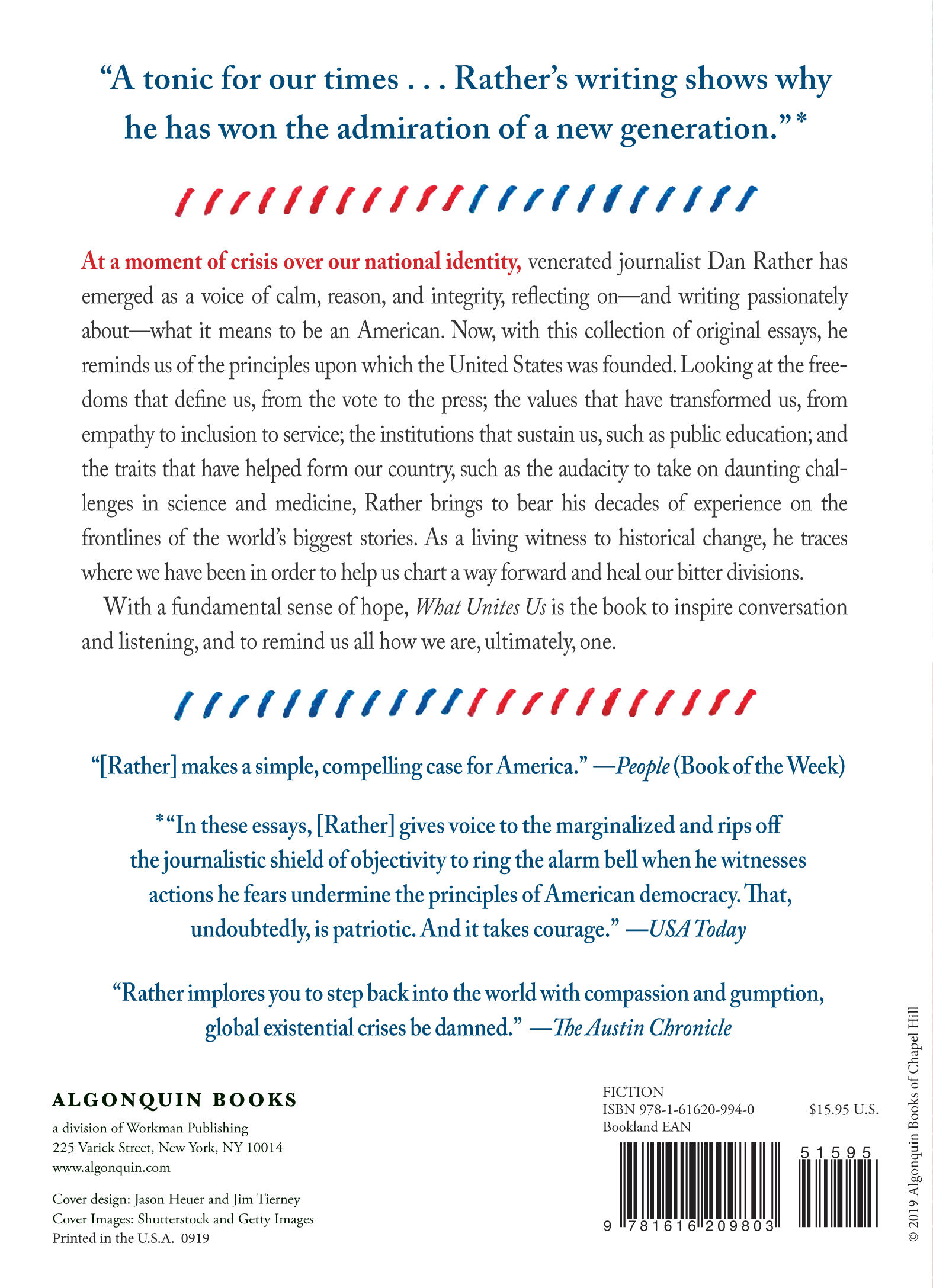 “What Unites Us is at times almost unbearably poignant. Yet Rather’s words provide a sort of salve—and clear thinking about how to recover from these ugly times. What Unites Us is a passionate treatise on preserving the best of America and letting go of that which makes us weaker.”