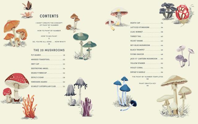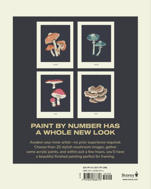 This book is an open invitation to create art. Inside you’ll find tips and techniques for painting 20 mushrooms printed on premium cardstock along with a swatch palette for color matching. The 8″ x 10″ sheets have two background options–light or dark–and are designed to fit store bought, ready-made frames.