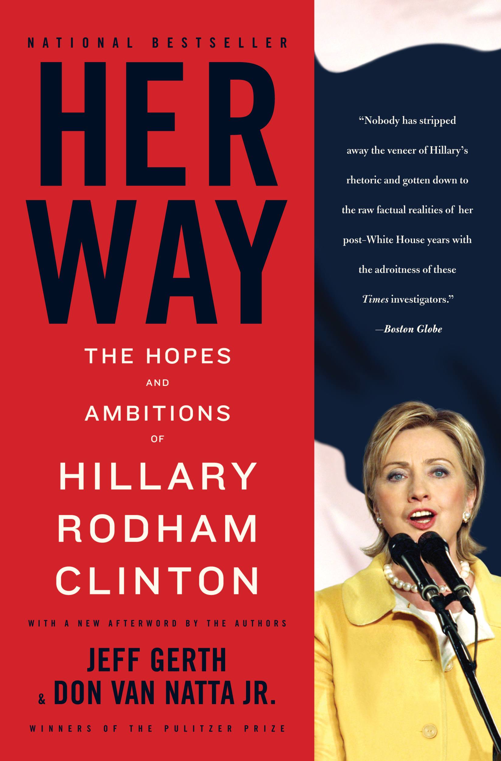 Now, as she make her historic run for the presidency, Pulitzer Prize-winning New York Times reporters Jeff Gerth and Don Van Natta Jr. bring us the first comprehensive and balanced portrait of the most important woman in American politics. Drawing upon myriad new sources and previously undisclosed documents, Her Way shows us how, like many women of her generation, Hillary Rodham Clinton tempered a youthful idealism with the realities of corporate America and big-league politics. It takes readers from the dorm rooms at Wellesley to the courthouses of Arkansas and Washington; to the White House and role as First Lady like none other; inside the back rooms of the Senate, where she expertly navigates the political and legislative shoals; to her $4 million mansion in Washington, where she presides over an unparalleled fundraising machine; and to her war room, from which she orchestrates ferocious attacks against her critics. Throughout her career, she has been alternately helped and hindered by her marriage to Bill Clinton.