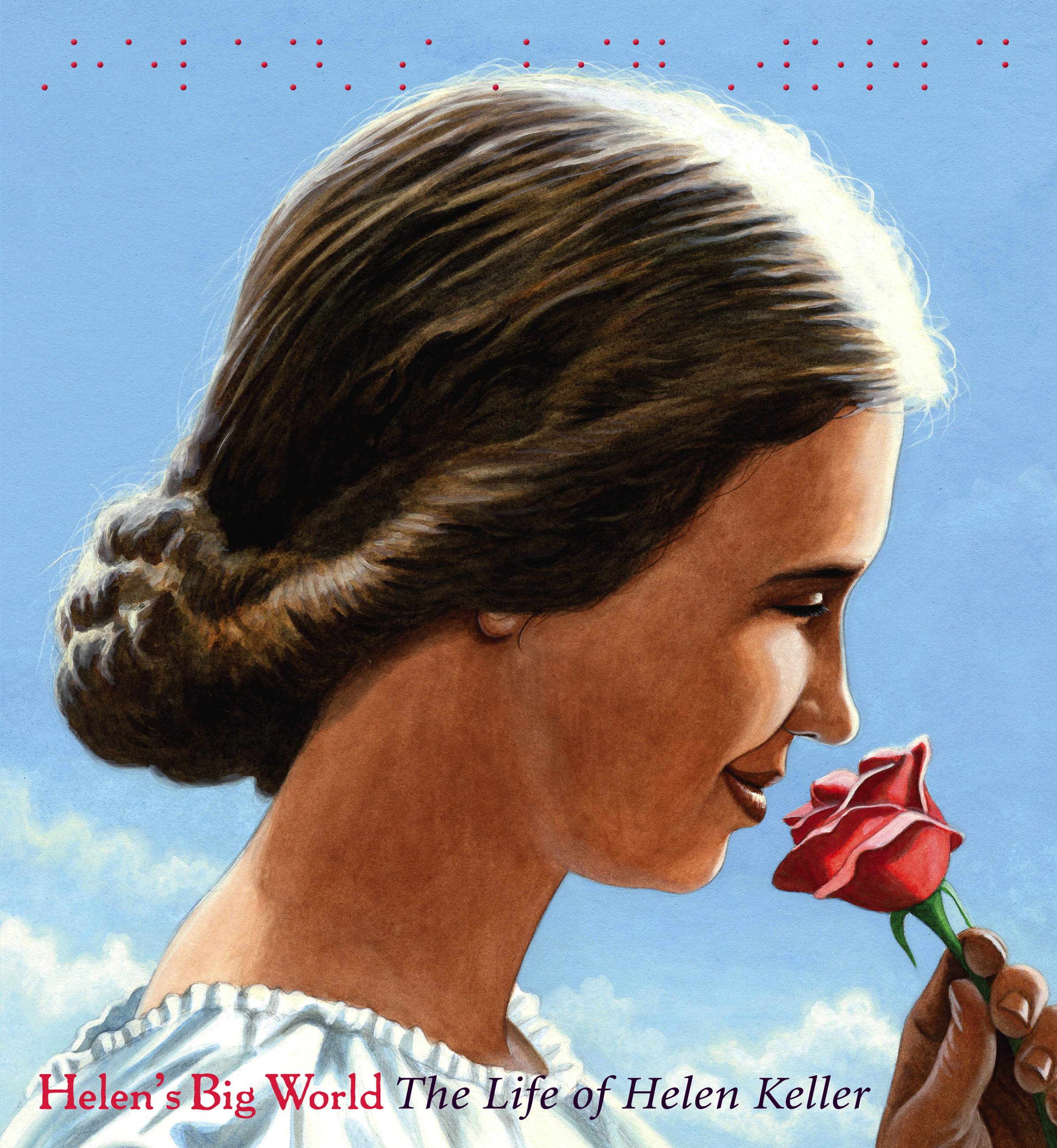 “Appearing beside broad, horizontal illustrations, Rappaport’s narrative is spaced out in poetic form. [The] sometimes dramatic illustrations show just how big Helen’s world could be, picturing her in a college classroom, in a tree, on a stage, and in a factory with child laborers. The back endpapers illustrate the alphabet of hand signs that Sullivan taught Keller. Readers intrigued by the Braille alphabet can feel the raised red dots on the jacket, which spell out the book’s title. A worthwhile addition to biography shelves.”Booklist
