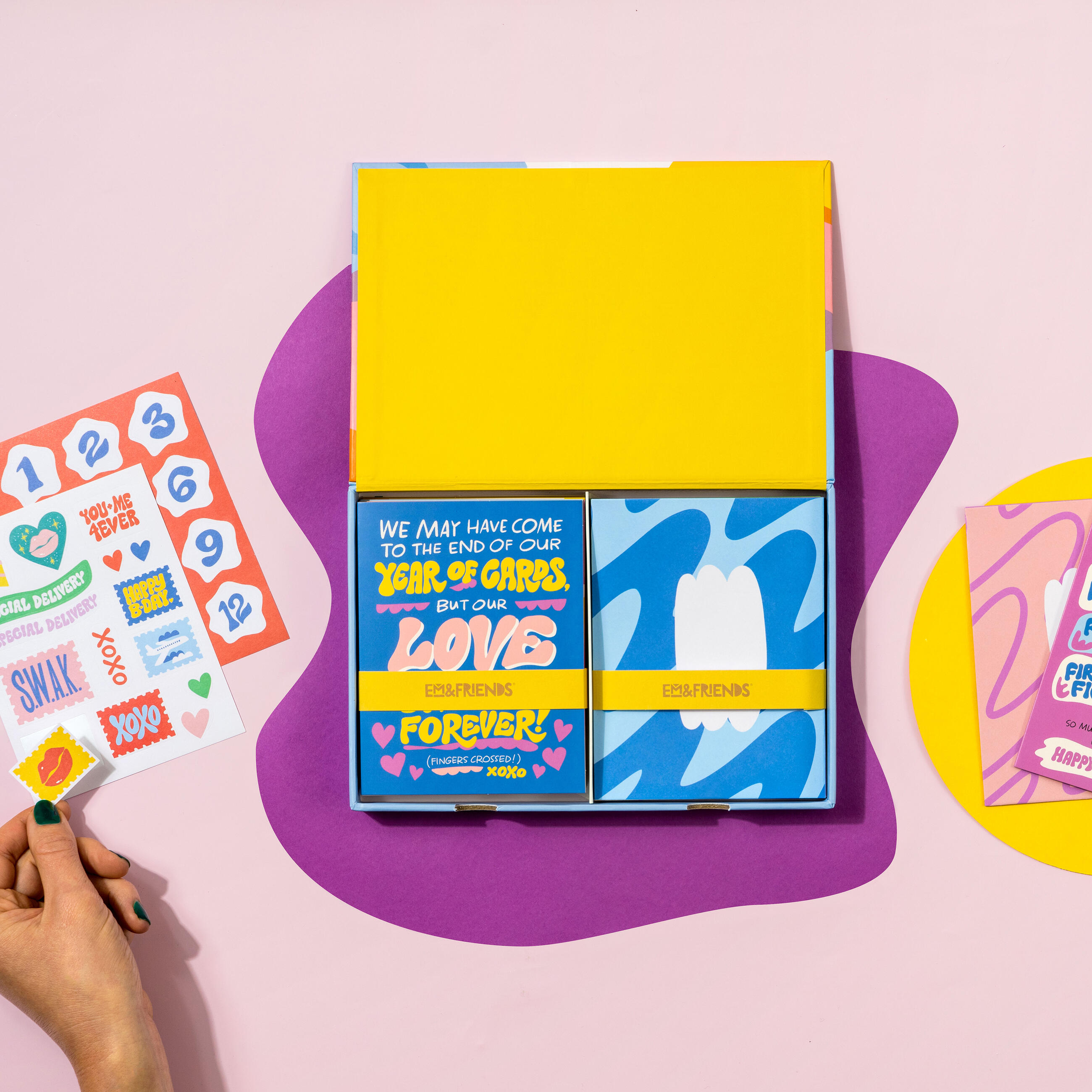 Finding ways to surprise and delight Your Person can be a challenge. Let us take care of it for you! Our new greeting cards boxed set supplies one card a month from you to your special boo (are people still saying boo?), including a birthday card!. Cute stickers make sealing the deal even sweeter. You can start sending the cards at any time.