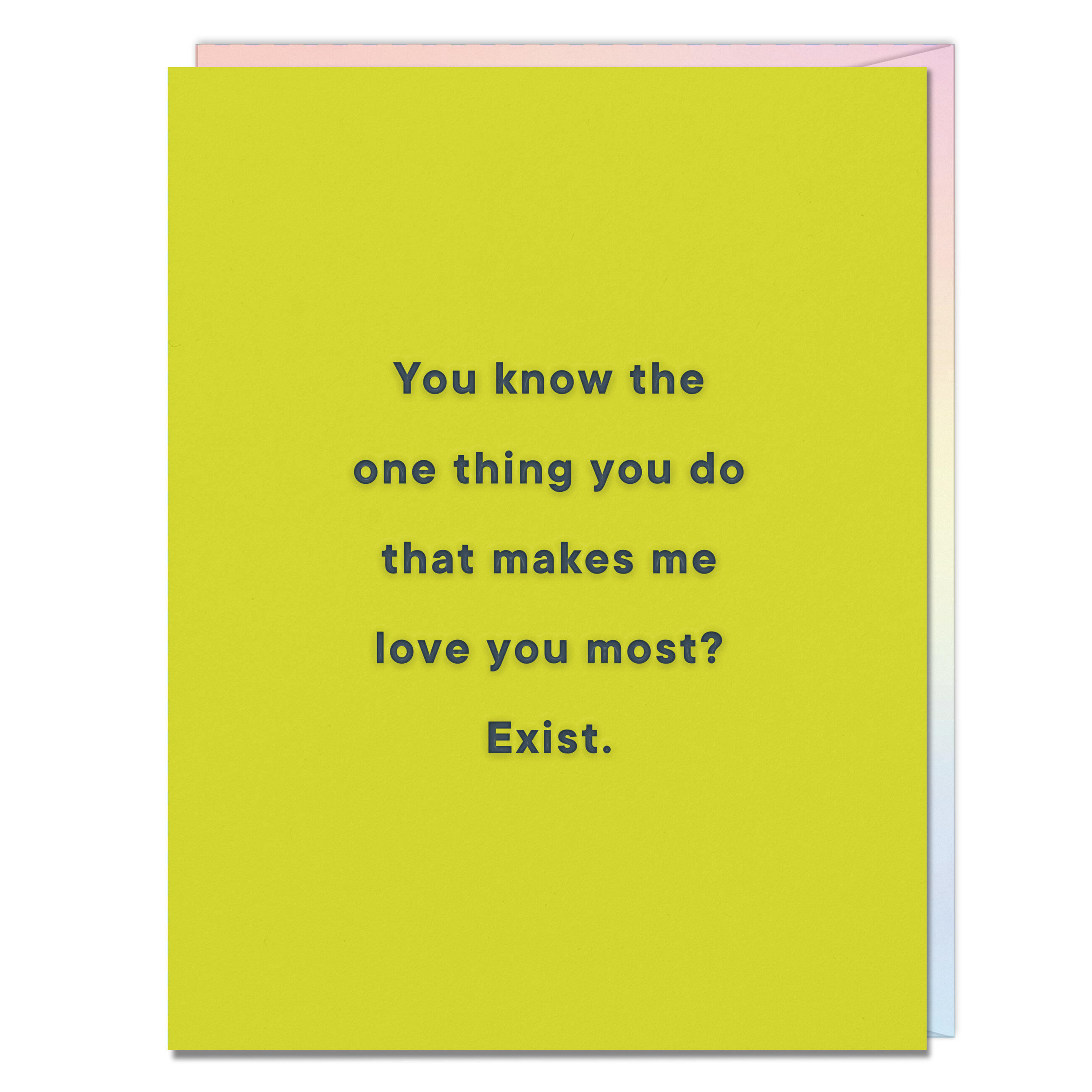 Card reads: You know the one thing you do that makes me love you most? Exist.