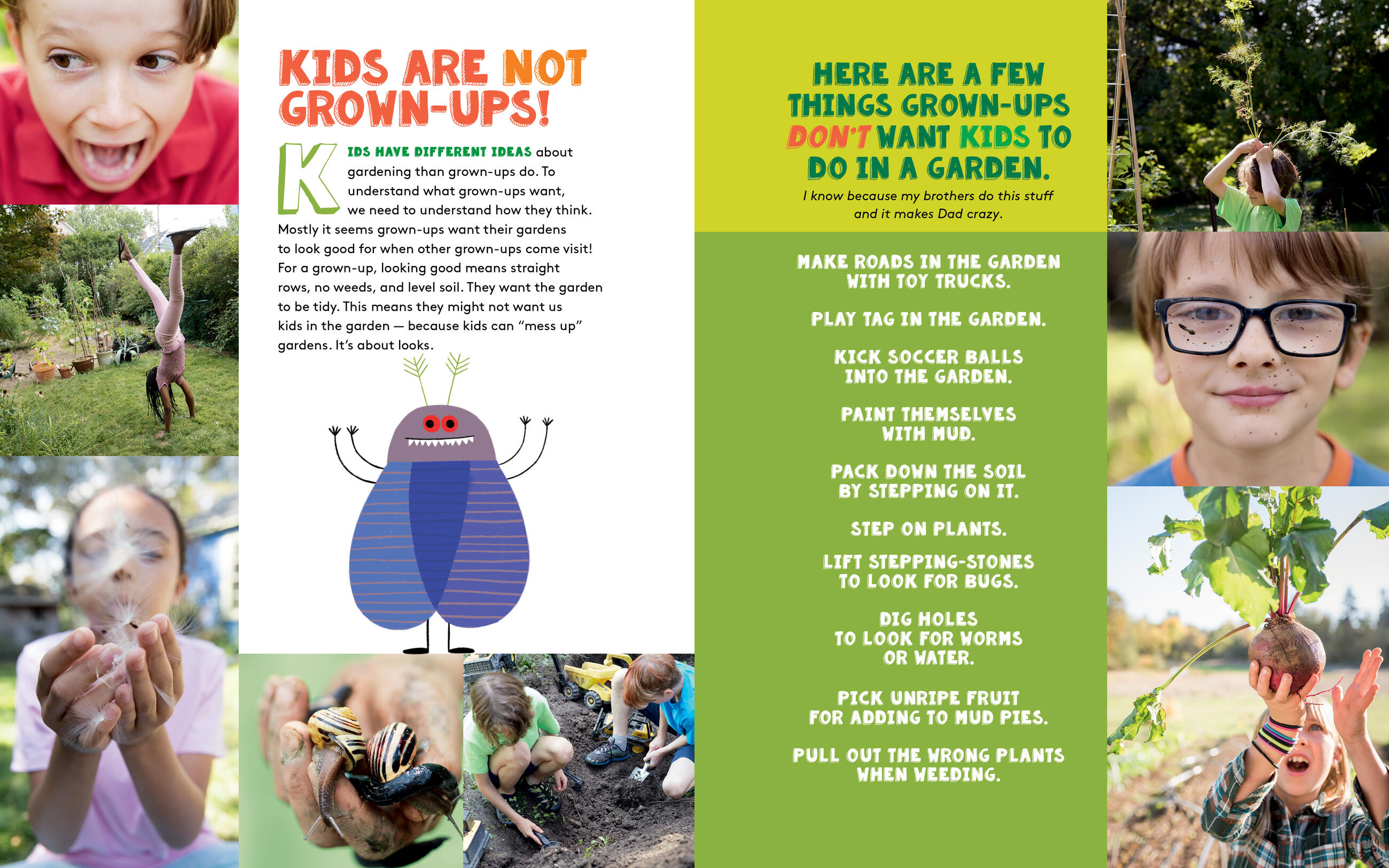 Gardening with Emma is a kid-to-kid guide to growing healthy food and raising the coolest, most awesome plants while making sure there’s plenty of fun. With plants that tickle and make noise, tips for how to grow a flower stand garden, and suggestions for veggies from tiny to colossal, Emma offers a range of original, practical, and entertaining advice and inspiration. She provides lots of useful know-how about soil, sowing, and caring for a garden throughout the seasons, along with ways to make play spaces among the plants. Lively photography and Emma’s own writing (with some help from her gardening dad, Steve) capture the authentic creativity of a kid who loves to be outdoors, digging in the dirt.