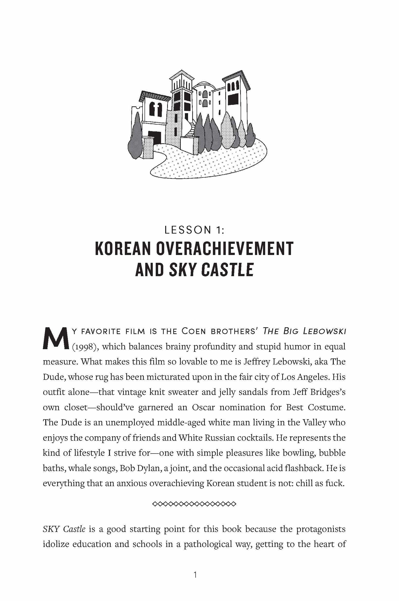 • Interior page from “K-Drama School: A Pop Culture Inquiry into Why We Love Korean Television” showing the first page of Lesson 1: Korean Overachievement and SKY Castle.