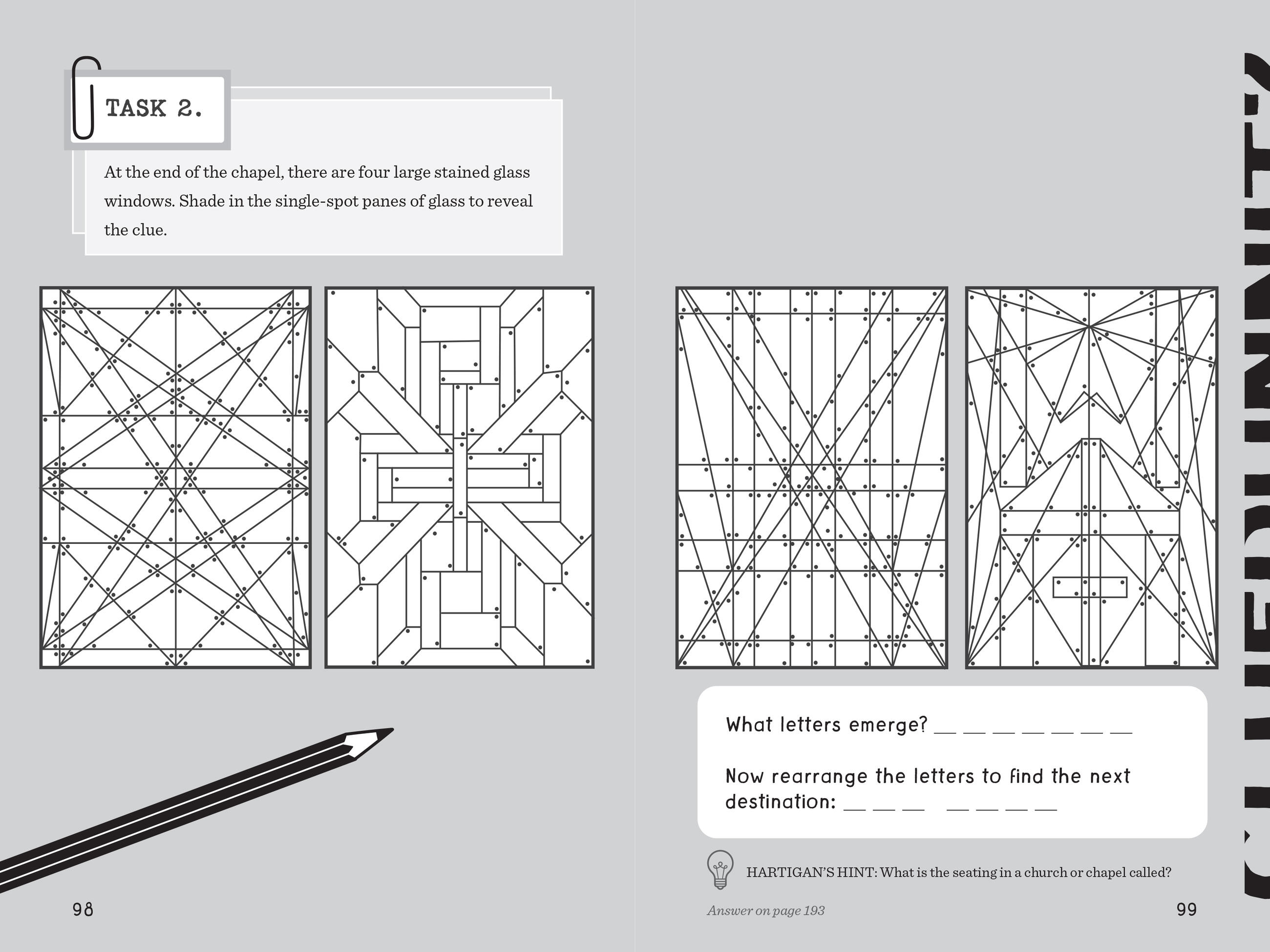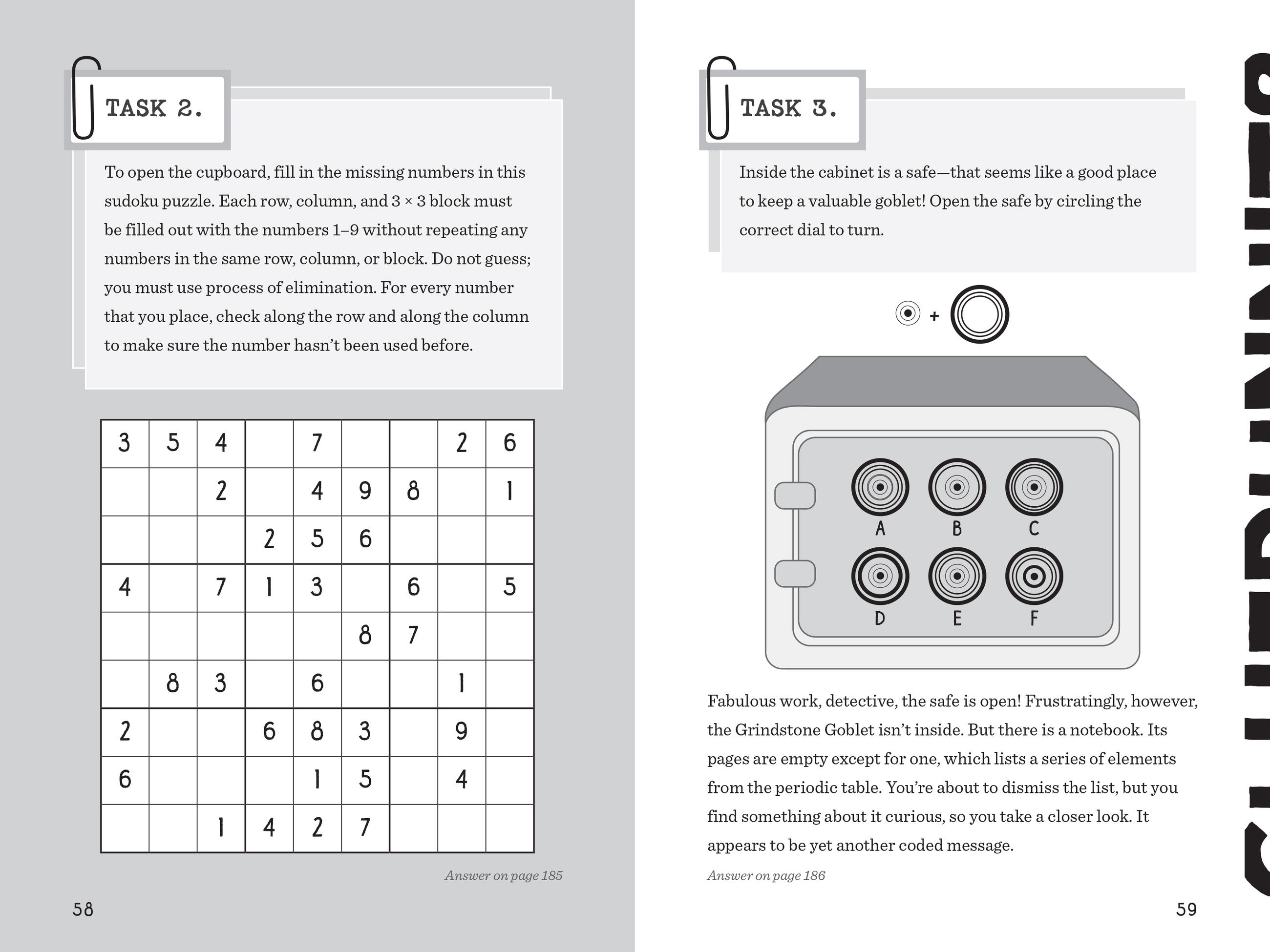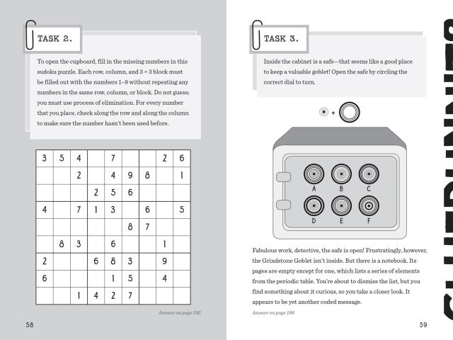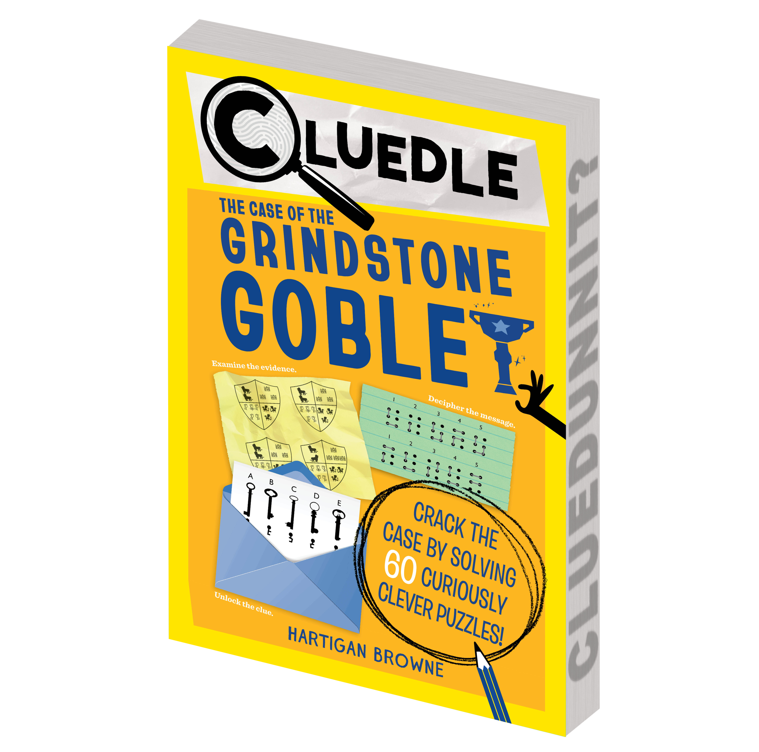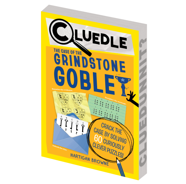 Calling all sleuths! The fifth title in the Cluedle series of interactive mystery books for young readers takes place at Grindstone Academy, the most prestigious boarding school in England. World-renowned Private Investigator Hartigan Browne has been contacted by the headmaster Basil Thumblethorpe to help locate the whereabouts of the Grindstone Goblet, a jewel-encrusted golden trophy given to the school in the 1400s by King Henry VI. Needless to say, it is exceedingly valuable. Finding the goblet and who is responsible for the theft will take reader-detectives on undercover assignment as new students as they track clues to every corner of the school campus. Along the way, readers tackle 60 brain-busting puzzles, each holding a clue to solving the larger mystery. Only detectives with excellent brains and superior logic skills need apply.