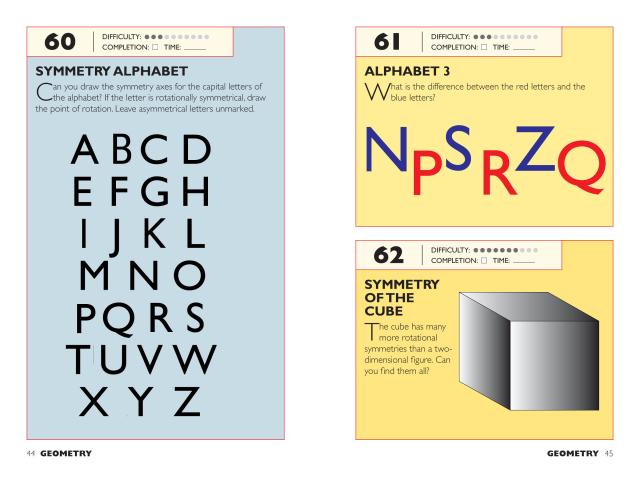 Here are mental games, visual challenges, logic posers, riddles, and illusions, each designed to stretch neurons and give the brain a workout—all in a format that will fit in your pocket. The puzzles (both original and mind-boggling adaptations of classics) are rated in difficulty from level one to ten, but even the easiest are guaranteed to make the solver feel smart.
