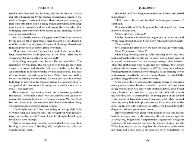 White Fang tells the story of prospector Weedon Scott and White Fang, the dog he rescues from a cruel dog-fighter. Though the wolf-dog pup at first seems savage beyond rehabilitation, Scott’s kind ministrations and earnest friendship eventually open the dog’s heart to an acceptance of domestication. Written in the first decade of the twentieth century, Call of the Wild and White Fang are landmark tales of adventure that put Jack London’s writing career on the map. They are also the work of a writer with an exquisite understanding of the dynamic between civilization and savagery.