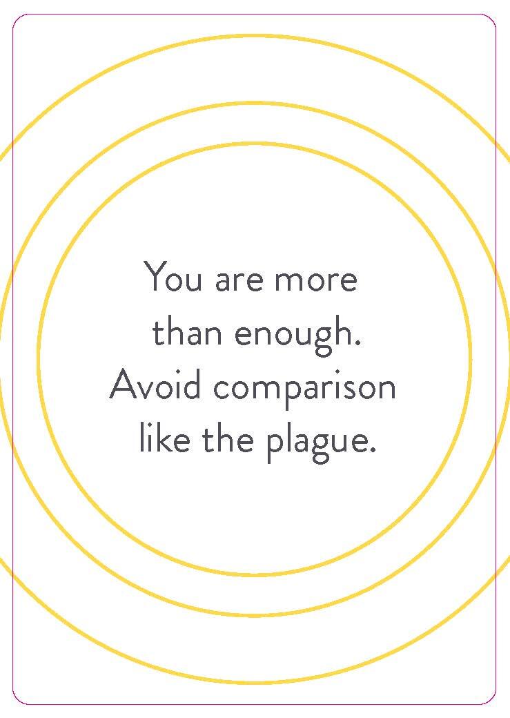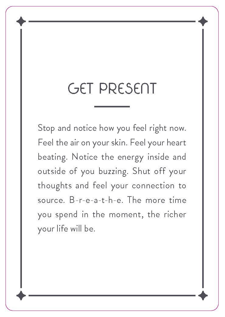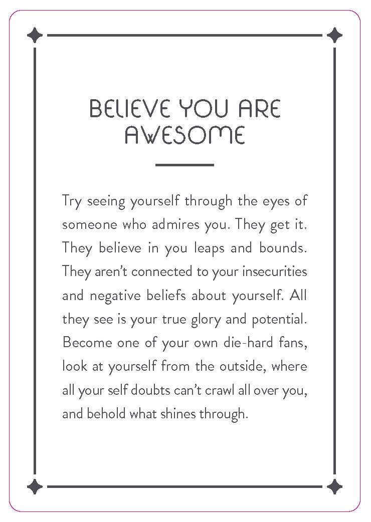 Half the cards feature quotes you can use as affirmations, intention-setters, wake-up calls, and reminders of how powerful and lovable you are. The other half contain exercises to get you (and keep you) moving in the direction you want to go as you push yourself out of your comfort zone. Equipped with these tools, you’ll be one step closer to manifesting the life you deserve.