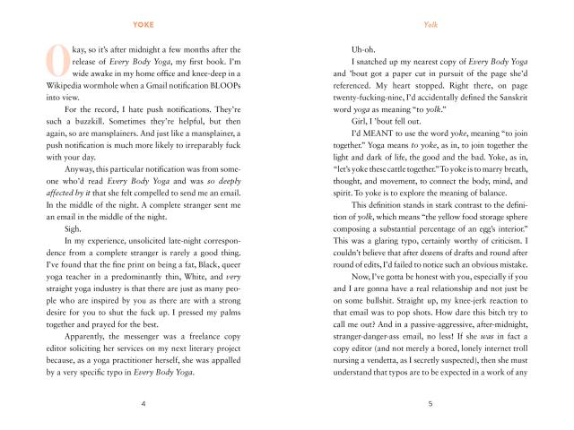 "Yoke is full of the kind of wisdom, honesty, and vulnerability that can only come from someone who’s mastered the art of yoking in all its forms: the physical, the spiritual, the mental." –Refinery29