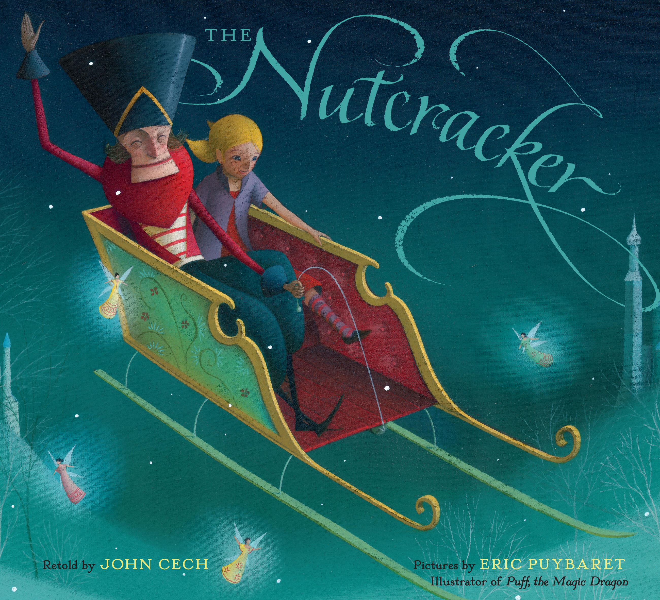 What a special Christmas gift this will be: the beloved holiday fantasy, beautifully retold by John Cech (author of our Classic Fairy Tale series) and illustrated by Eric Puybaret, whose imaginative art helped turn Puff, the Magic Dragon into a blockbuster. Cech bases his version on E.T.A. Hoffman’s original, which features not only the story familiar to all ballet lovers, but other wondrous adventures—including the tale of Princess Pirlipat and an explanation of the origins of the Nutcracker himself.