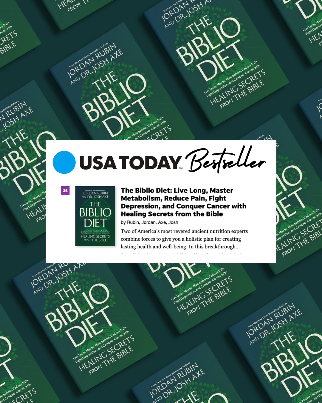 • “The Biblio Diet is a bold return to ancient wisdom rooted in modern science. It’s not just a diet—it’s a divine blueprint for healing, purpose, and long life. Jordan and Josh are leading a health revolution from the soil to the soul—and this book is your invitation.”