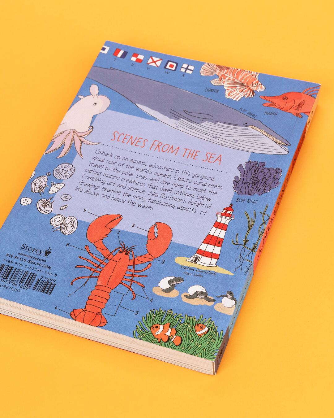 Follow Rothman’s inquisitive mind and perceptive eye along shorelines, across the open ocean, and below the waves for an artistic exploration of the watery universe. Through her drawings, discover how the world’s oceans formed, why the sea is salty, and the forces behind oceanic phenomena such as rogue waves. Colorful anatomical profiles of sea creatures from crustacean to cetacean, surveys of seafaring vessels and lighthouses, and the impact of plastic and warming water temperatures are just part of this compendium of curiosities that will entertain and educate readers of all ages.