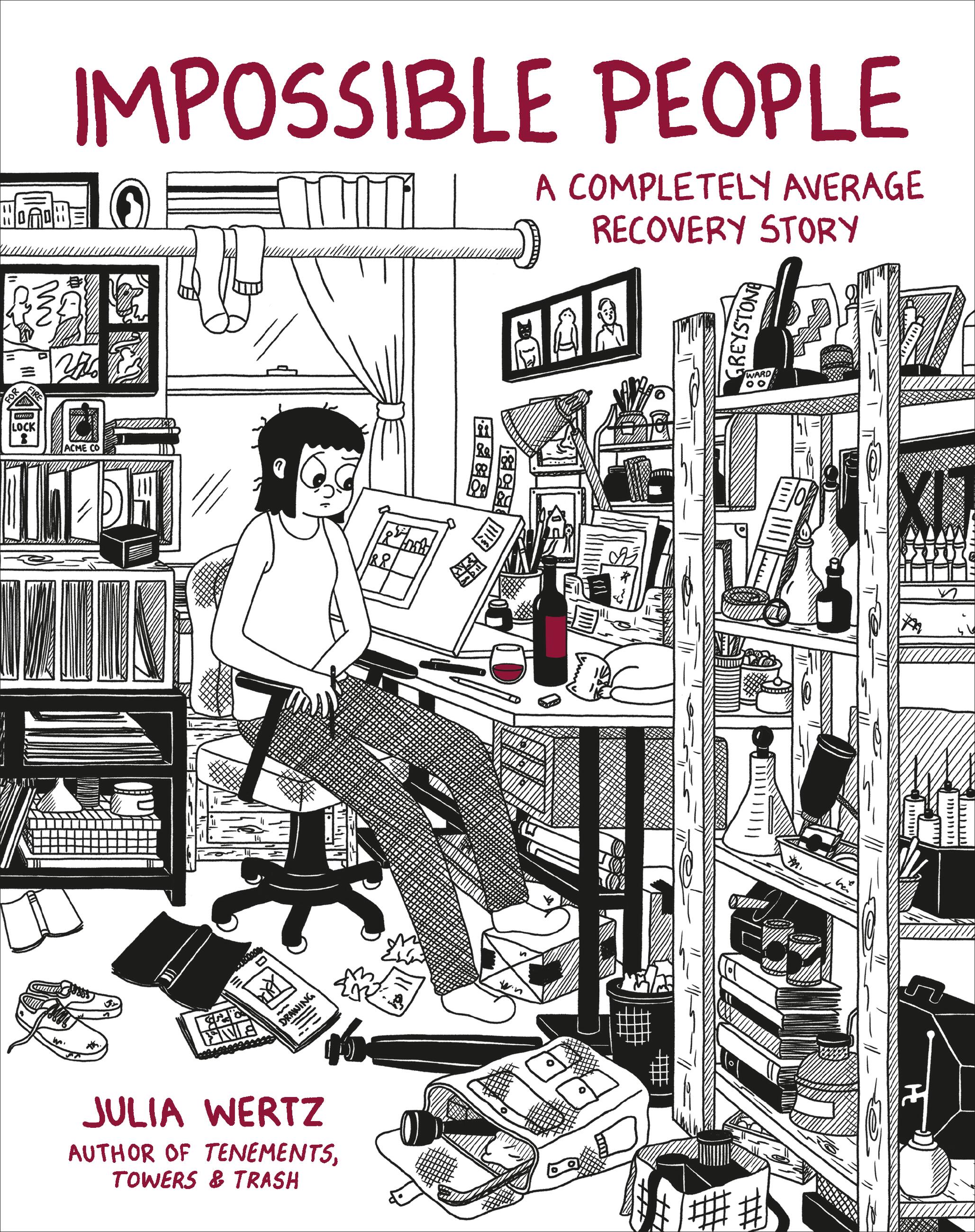 In her keenly observed graphic memoir, Impossible People, celebrated cartoonist Julia Wertz chronicles her haphazard attempts at sobriety and the relentlessly challenging, surprisingly funny, and occasionally absurd cycle of addiction and recovery.