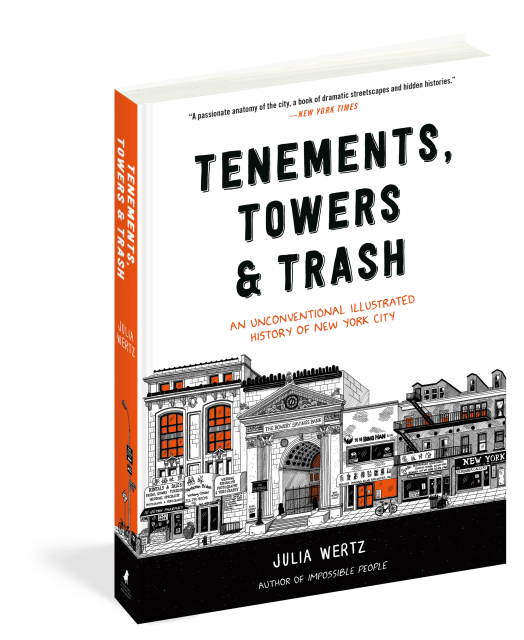 From bars, bakeries, and bookstores to food carts, street cleaners, and apartments both cramped and grand, Tenements, Towers & Trash is a wild ride in a time machine taxi from the present day city to bygone days of yore.