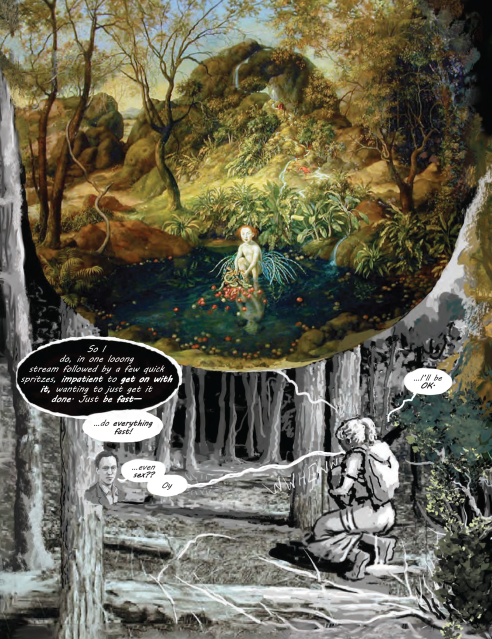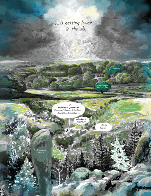 "Giotto and Georgia O’Keeffe are not going to give us graphic novels, but another great painter has: Julie Heffernan. Her reverie about getting lost in the woods with a baby strapped to her is many kinds of beauty: the sheer visual beauty of her paintings and drawings here, the beauty of introspection and of the brilliant exposition of a reverie during a walk that went too far into the unknown. Or just far enough to find those things that can be found no other way."Rebecca Solnit, award-winning author of A Field Guide to Getting Lost
