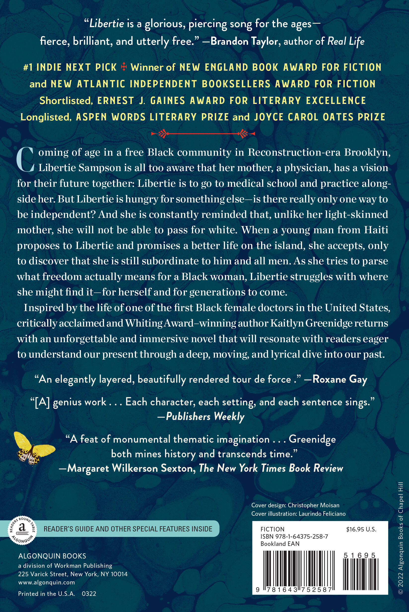 “The voice that fuels this novel is rooted in the body and rises toward myth, forged of history, ocean salt, iron, and hope. With Libertie, Kaitlyn Greenidge adds an indelible new sound to American literature, and confirms her status as one of our most gifted young writers.”
