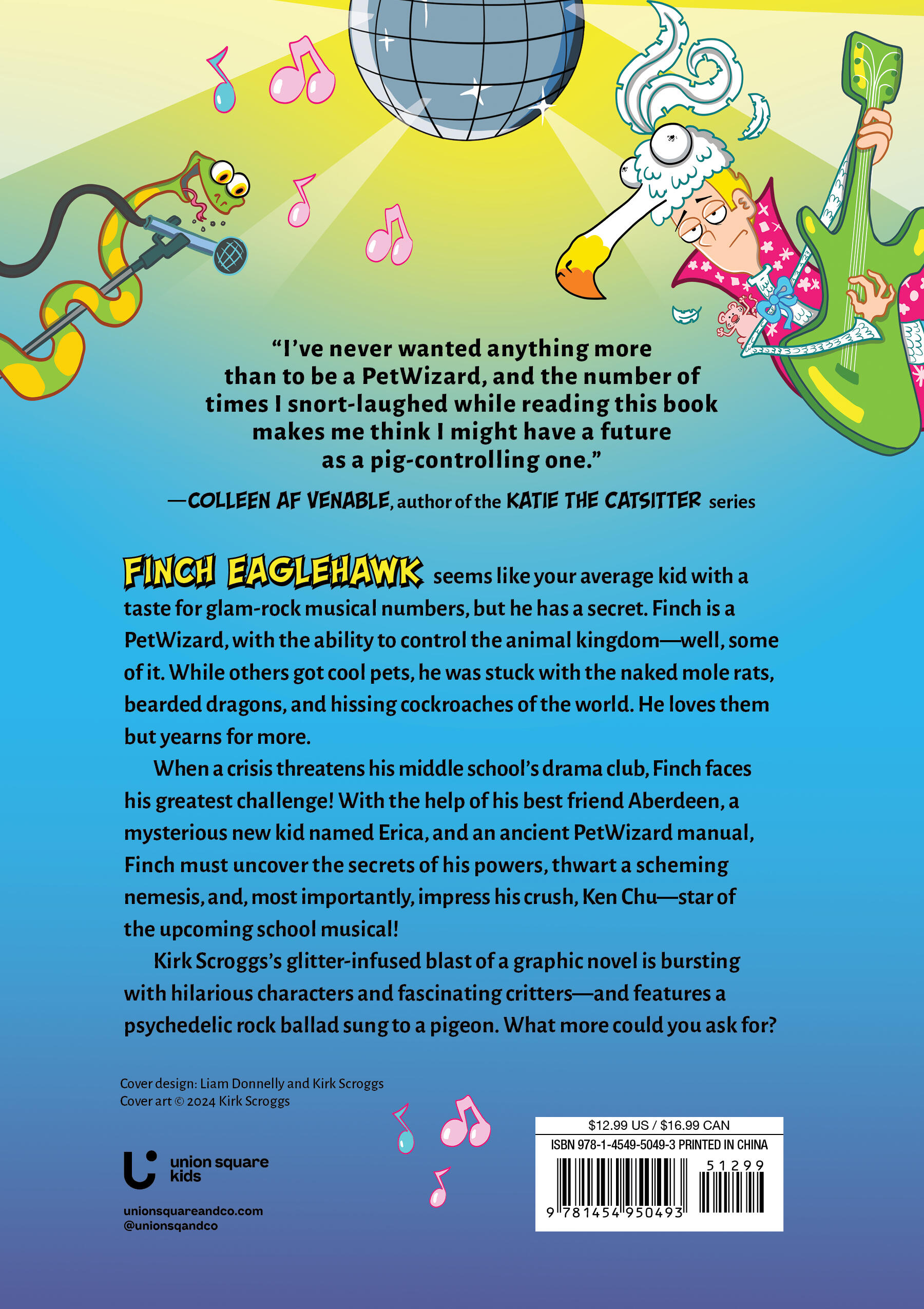 Finch Eaglehawk may seem like an average oddball with a taste for the dramatic and glam-rock musical numbers, but he has a secret. Finch is a PetWizard, with the ability to control the animal kingdom—well, the “et cetera” category of the animal kingdom. Though he loves his naked mole rats, bearded dragons, and boa constrictors, Finch yearns for more. With the help of his best friend, Aberdeen, a mysterious new kid named Erica, and an ancient PetMaster manual, Finch tries to learn how to own his powers and use them to help those in need, protect the vulnerable, and, most important, impress his crush, Ken Chu, the star of the upcoming school musical.