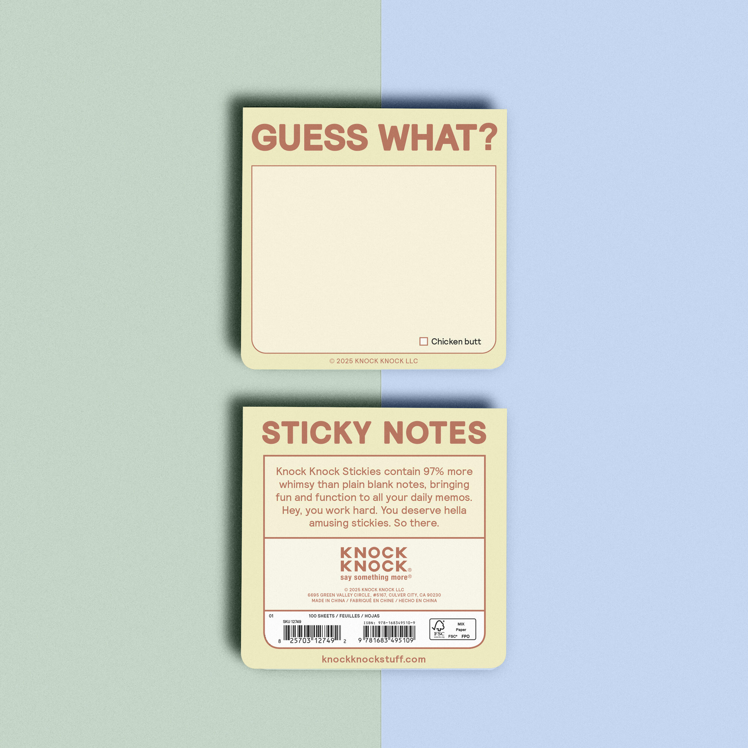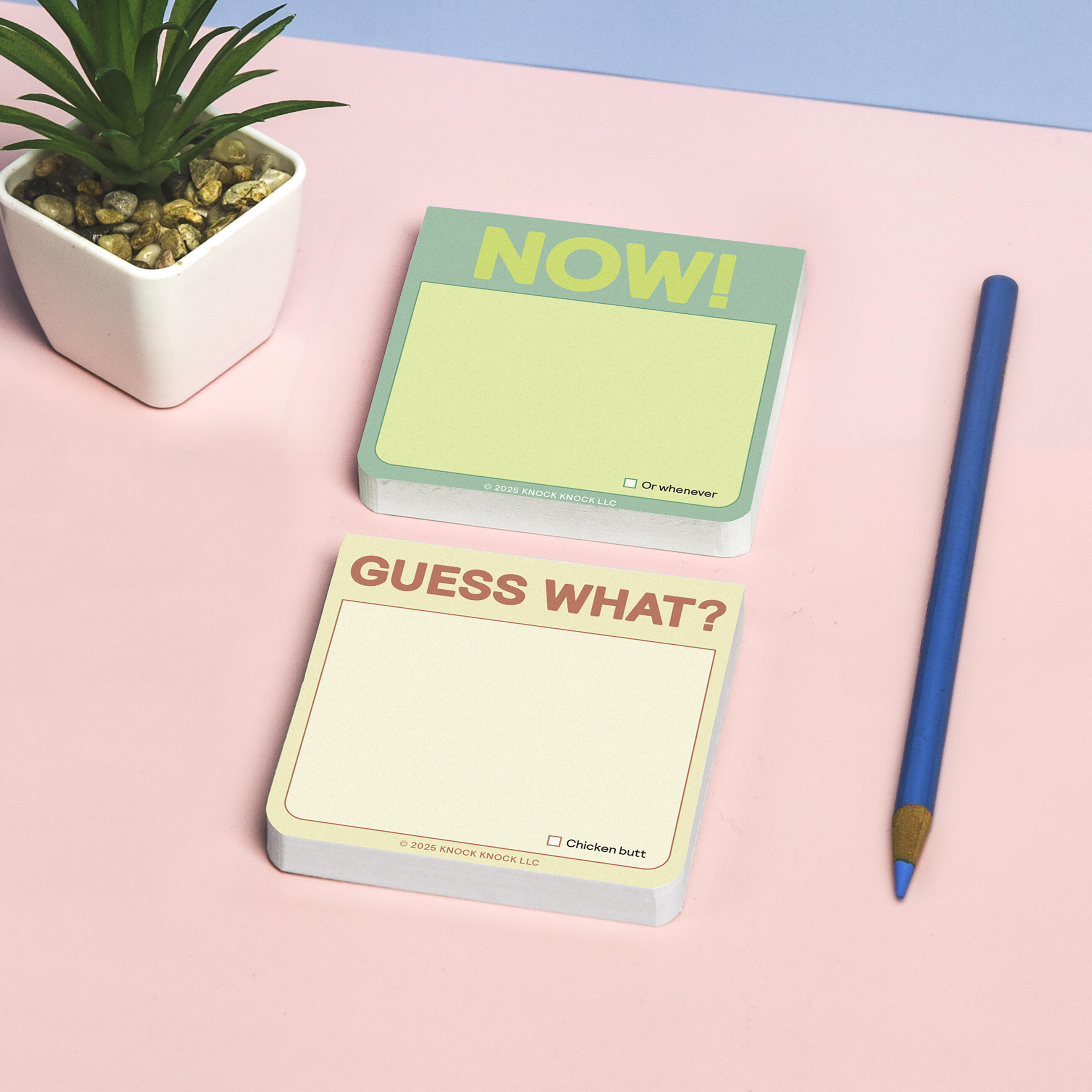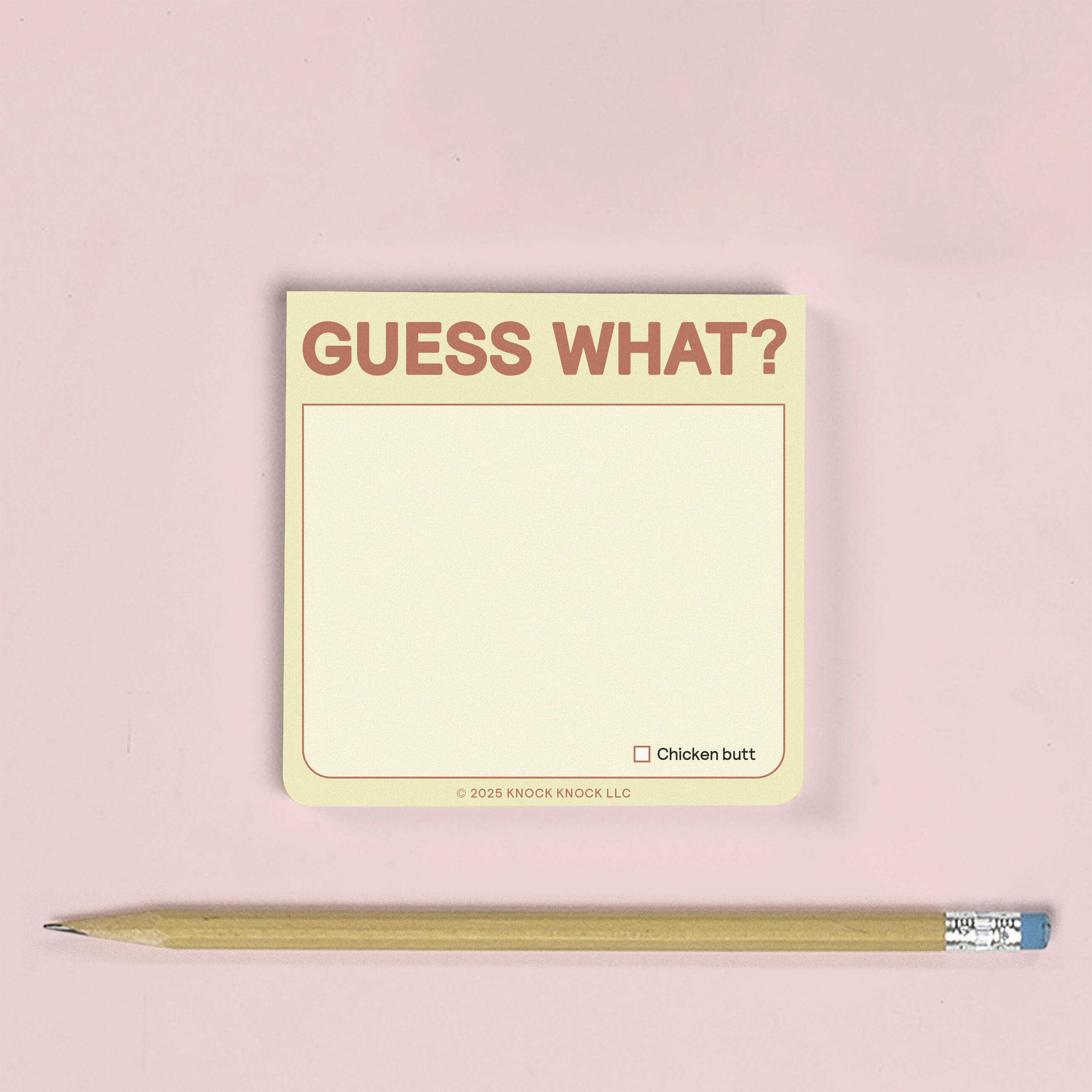 Guess what? Knock Knock Stickies contain 97% more wit-&-whimsy than plain blank notes, bringing fun and function to all your daily memos. Hey, you work hard. You deserve super cute sticky notes. (PS: Chicken butt.)