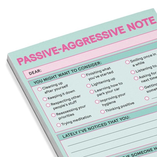 Express yourself the thinly veiled way! This passive-aggressive paper tantrum notepad lets you clearly but (somewhat) subtly address a range of behavioral failures in others including poor attitude and lackluster hygiene. Great for communication between roommates and coworkers!