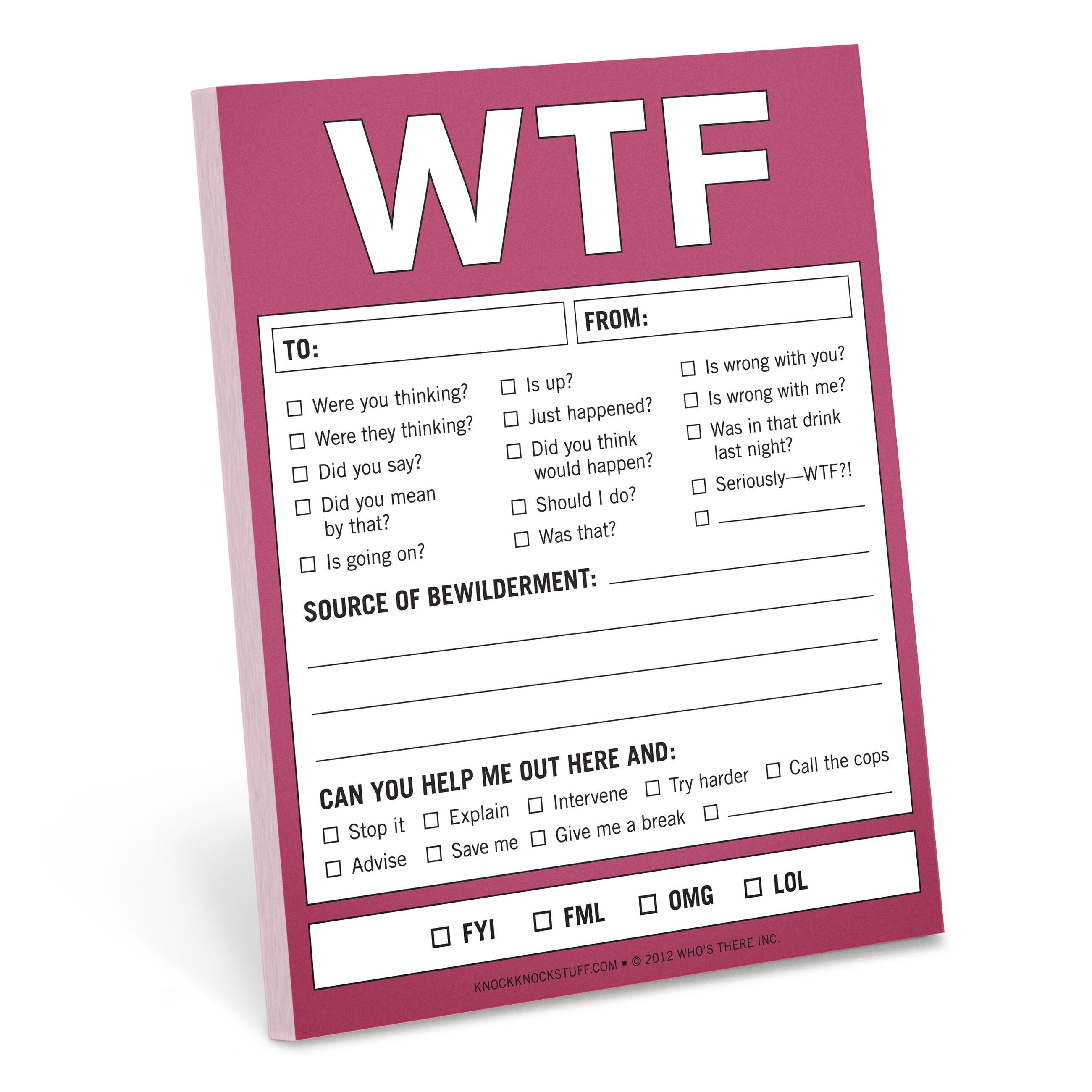 Spell out your befuddlement in the midst of any circumstance (while also channeling pent-up frustration) with the English-speaking world’s most expressive acronym and the simple check of a box or two. It’s the ultimate FYI.
