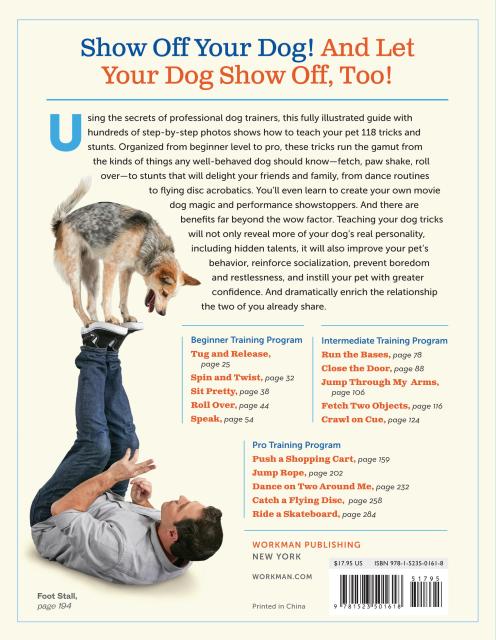Using the secrets of professional dog trainers, this fully illustrated guide with hundreds of step-by-step photos show how to teach your pet 118 tricks and stunts. Organized from beginner level to pro, these tricks run the gamut from the kinds of things any well-behaved dog should know—fetch, paw shake, roll over—to stunts that will delight your friends and family, from dance routines to flying disc acrobatics. You’ll even learn the tricks behind filmmaking with dogs to create your own movie magic and performance showstoppers. And there are benefits far beyond the wow factor. Teaching your dog tricks will not only reveal more of your dog’s real personality, including hidden talents, it will also improve your pet’s behavior, reinforce socialization, prevent boredom and restlessness, and instill your pet with greater confidence. And dramatically enrich the relationship the two of you already share.