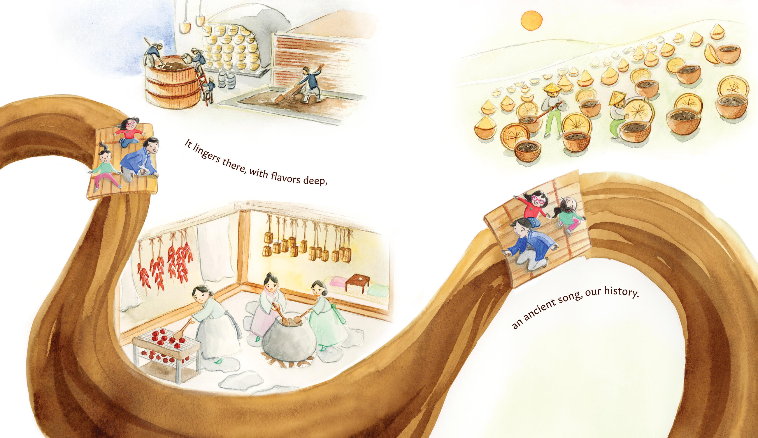 ✭ “Lee’s lively watercolor illustrations of the children gleefully celebrating each stage of the long process pair beautifully with the upbeat text for an informative, engaging story…. A joyful ode to soy sauce that’s delicious to the last drop.” —Kirkus Reviews, starred review
