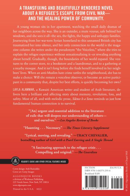 A young woman sits in her apartment, watching the small daily dramas of her neighbors across the way. She is an outsider, a mute voyeur, safe behind her windows, and she sees it all—the sex, the fights, the happy and unhappy families. Journeying from her war-torn Syrian homeland to this unnamed British city has traumatized her into silence, and her only connection to the world is the magazine column she writes under the pseudonym “the Voiceless,” where she tries to explain the refugee experience without sensationalizing it—or revealing anything about herself. Gradually, though, the boundaries of her world expand. She ventures to the corner store, to a bookstore and a laundromat, and to a gathering at a nearby mosque. And it isn’t long before she finds herself involved in her neighbors’ lives. When an anti-Muslim hate crime rattles the neighborhood, she has to make a choice: Will she remain a voiceless observer, or become an active participant in a community that, despite her best efforts, is quickly becoming her own?
