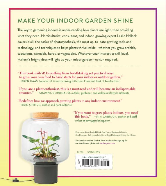 “Halleck’s book walks readers through the basics and turns potentially confusing concepts into common knowledge. . . Gardening Under Lights doesn’t just tell you how to have an aesthetically pleasing and successful indoor garden—it shows you.” I>Garden Center Magazine