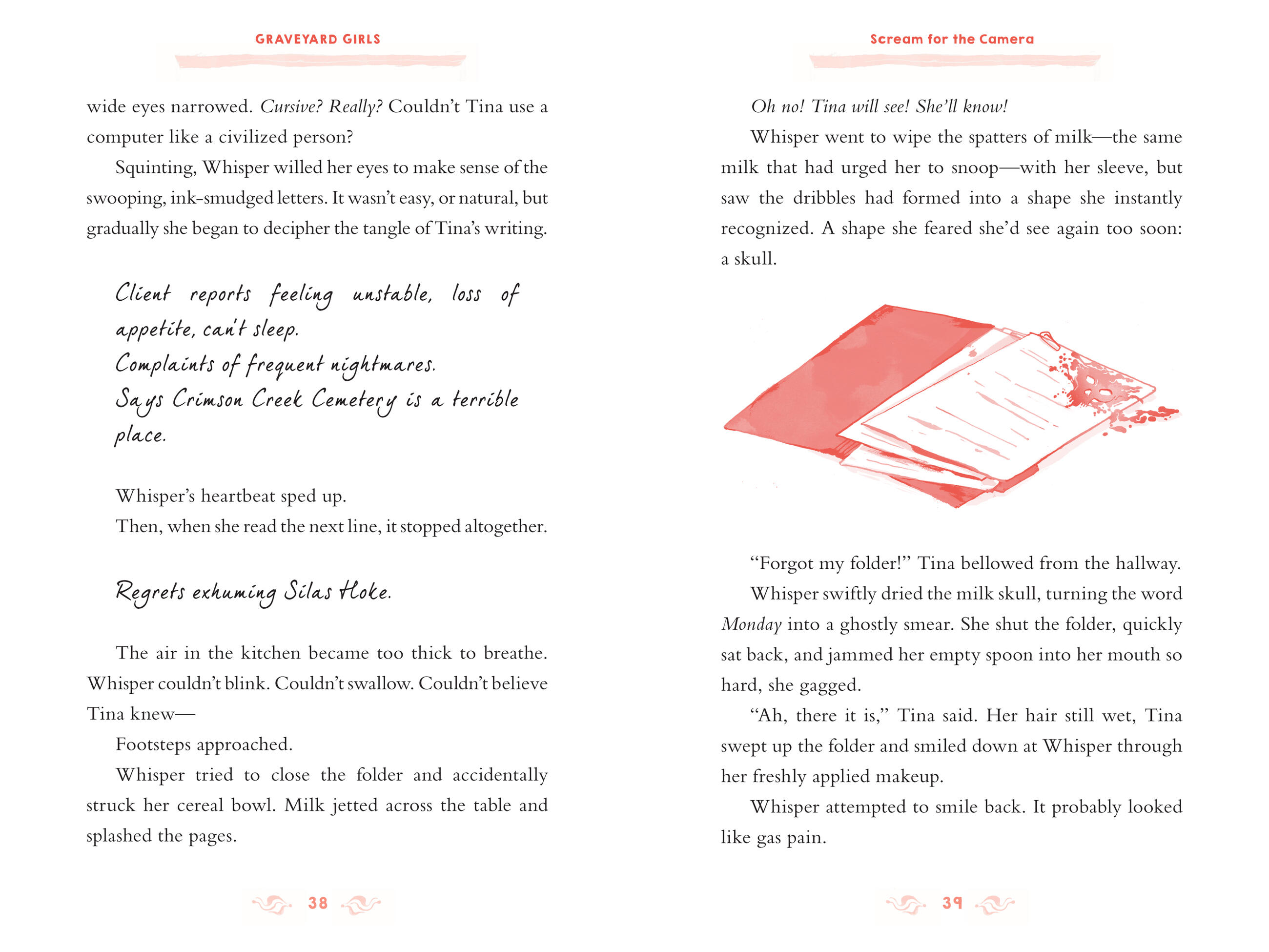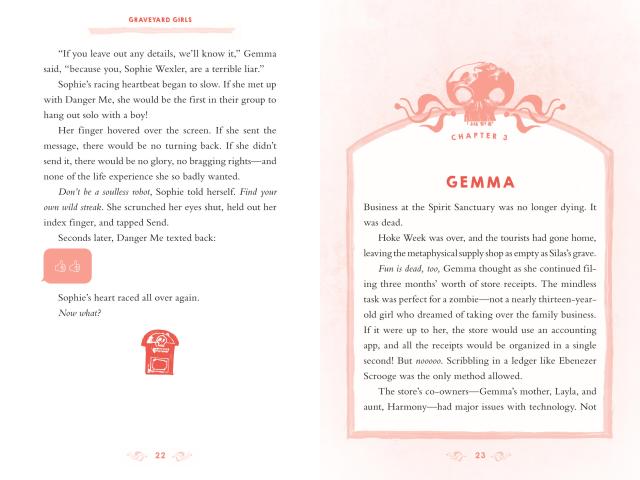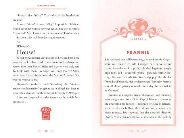 It’s been a month since the events of 1-2-3-4, I Declare a Thumb War, when the Graveyard Girls—Gemma, Whisper, Sophie, Frannie, and Zuzu—discovered Silas Hoke’s empty grave. A month, and no answers. That changes when messages from the other side start to creep up on the Graveyard Girls. Gemma’s good-luck charm. The skull in Whisper’s spilled milk. Sophie’s vanishing phone. Frannie’s theater curse. And Zuzu’s possessed Jōurnal. Who is trying to reach them . . . and why?