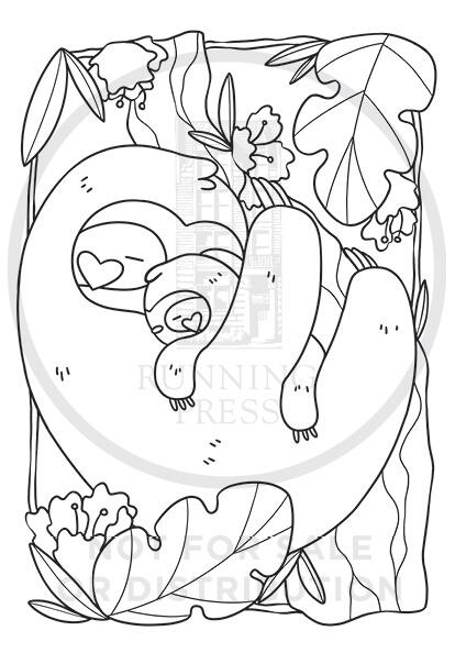 - 40 black line illustrations of sloths napping, cuddling, and even reading!