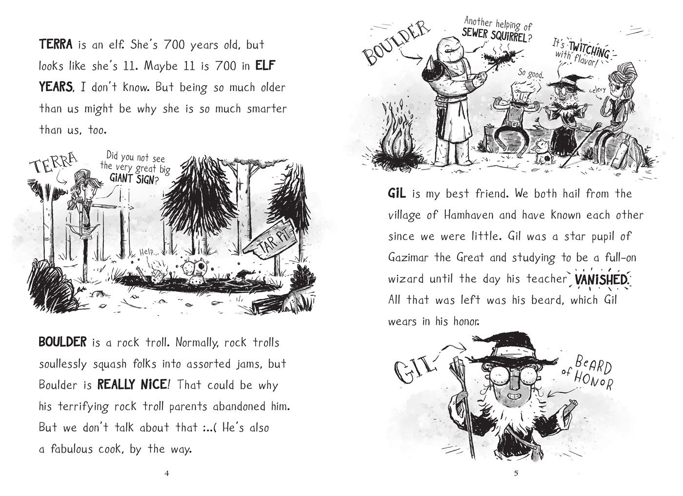 Meet the Quest Kids crew: Gil, a wizard (well, wizard in training . . . the beard isn’t his); Terra, a 700-year-old elf kid; Boulder, a rock troll who is more of a cook than a fighter; Ash, a flatulent pig-dog-maybe-lizard hybrid; and, Ned, the intrepid and overly optimistic leader with his own personal quest to find his missing parents. With humor, magic, mystery, and at least one acid swamp filled with skeletal alligators, Quest Kids and the Dragon Pants of Gold is a richly illustrated saga of fantasy friendship for readers from all kingdoms!