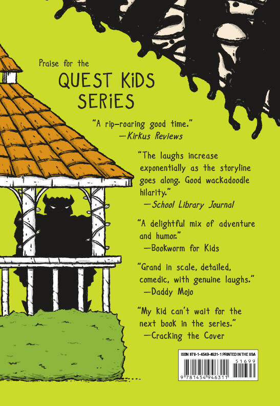 In the wake of the narrow escape from the evil Doug (an ex-bard determined to bum out and rule the world), the Quest Kids’ leader, Ned, was turned into a Doug-loving zombie by Doug’s powerful soul-stealing gem. The rest of the Quest Kids—Terra, Boulder, Gil, and Ash—have spent a year wandering the Seven Kingdoms, going from town to town trying to warn the people of Doug’s impending invasion. But always too late! By the time they revive Ned, all but one kingdom—the Goblin citadel of Dunglemire—has been transformed into mindless Doug fans. Arriving at Dunglemire, the Quest Kids find a huge encampment of Doug followers, ready for the biggest soul-stealing event of all time: Dougfest! The Quest Kids must work fast to pierce the impassable walls of Dunglemire, make common cause with the mysterious, and reputedly hideous, Goblins, and solve the mystery of an ancient spell that can neutralize Doug and free the world. Using their wits, magic, and questing knowledge (as well as the help of a flame-farting dog-lizard thing), can the Quest Kids stop this world conquerer? And can they reunite Ned and his long-lost parents?