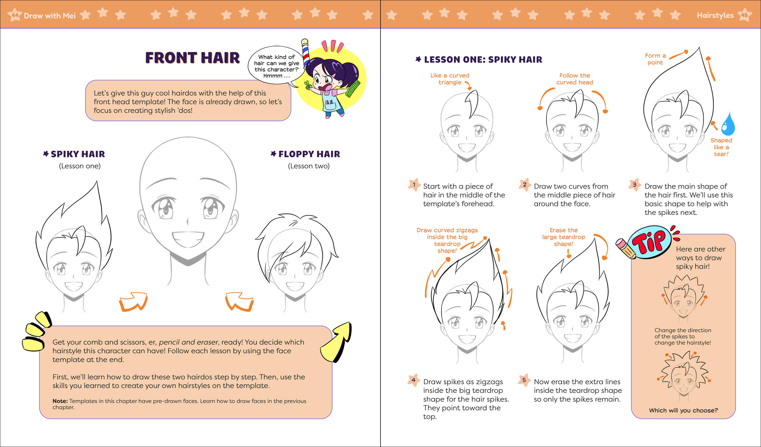 This easy-to-follow process helps guide young artists every step of the way—how to draw eyes, expressions and faces, hairstyles, full bodies and poses, outfits, and more. Each chapter includes practice templates.