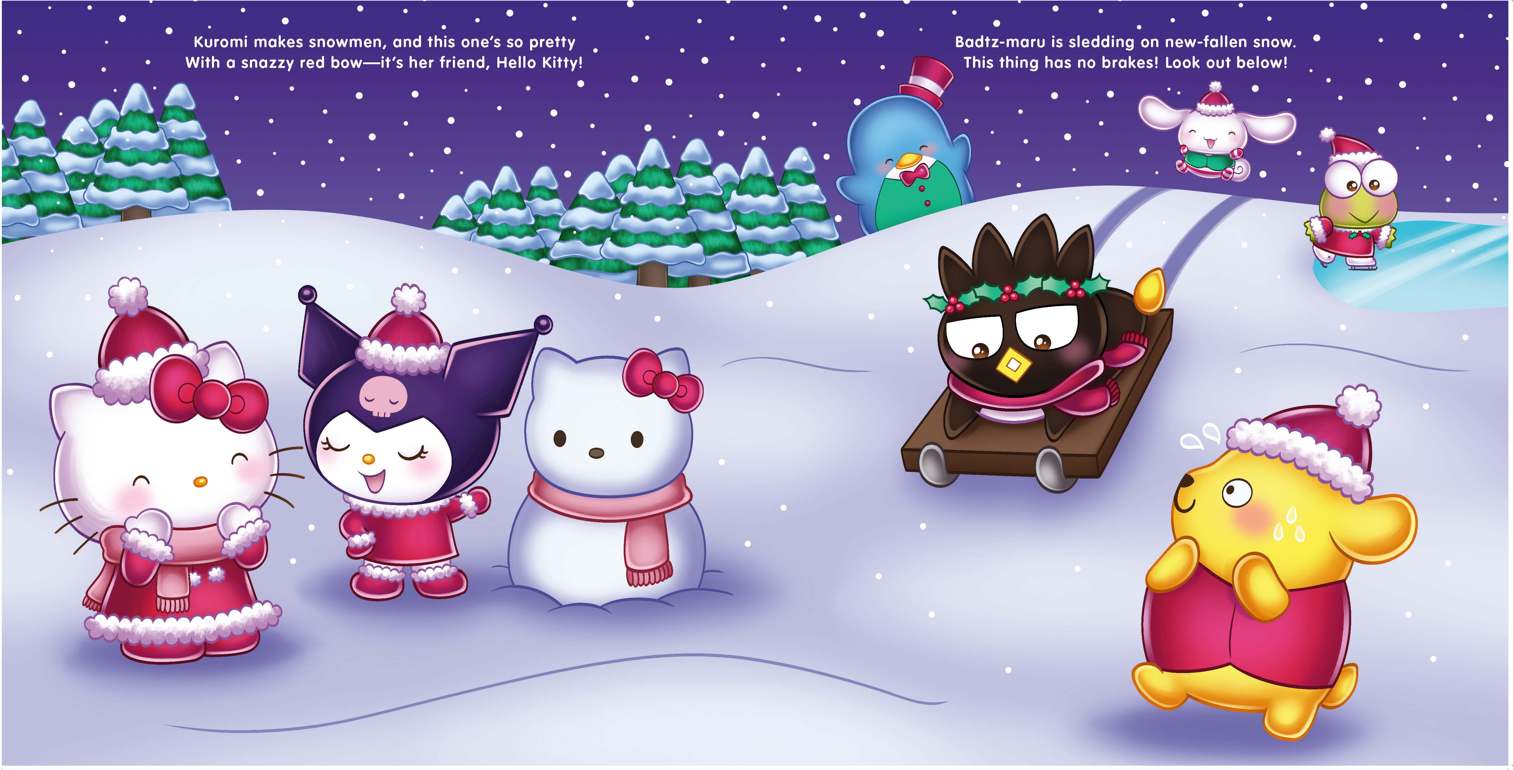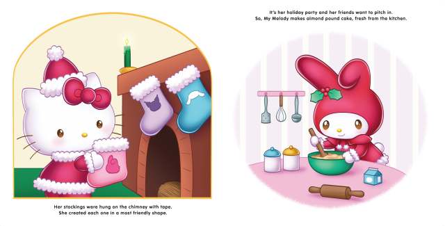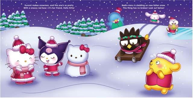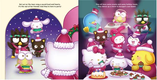 Celebrate the magic of the Christmas season with Hello Kitty and all of her friends as she prepares for her holiday party! My Melody makes a cake. Pompompurin brings lights for the tree. Kuromi gathers presents and wrapping paper. And soon the supercute gathering has begun! After a day of snow play, exchanging thoughtful gifts, and dancing to cool beats, it’s time for the party to end. Hello Kitty calls out as her friends walk out of sight: “Merry Christmas to all, and to all a good night!”